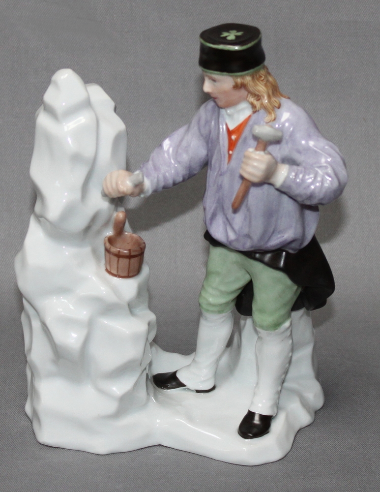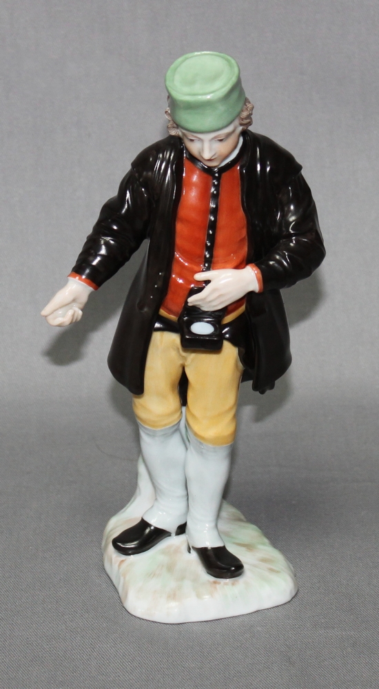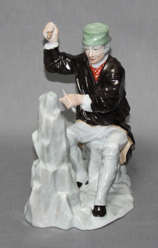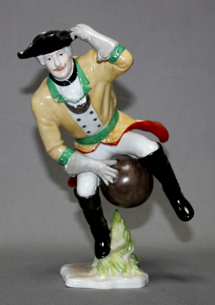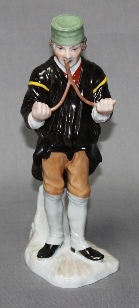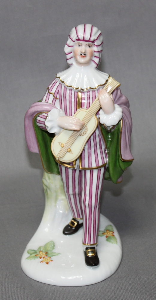 #58 Porzellan. Volkstedt - Aelteste Volkstedter Porzellanfabrik. Tanzender Narr. Monochrome Porzellanfigur auf flachem naturalistischen Sockel. Auf der Unterseite mit Blaustempel “Aelteste Volkstedter Porzellanfabrik 1762“. Produktion aus der 2. Hälfte des 20. Jhrdts. Höhe 19,0 cm. (20)