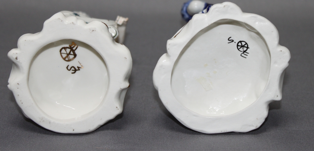 Porzellanfiguren mit Zierapplikationen auf angedeuteten