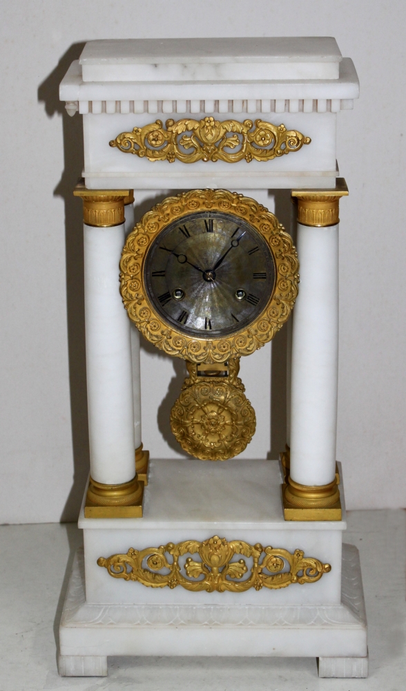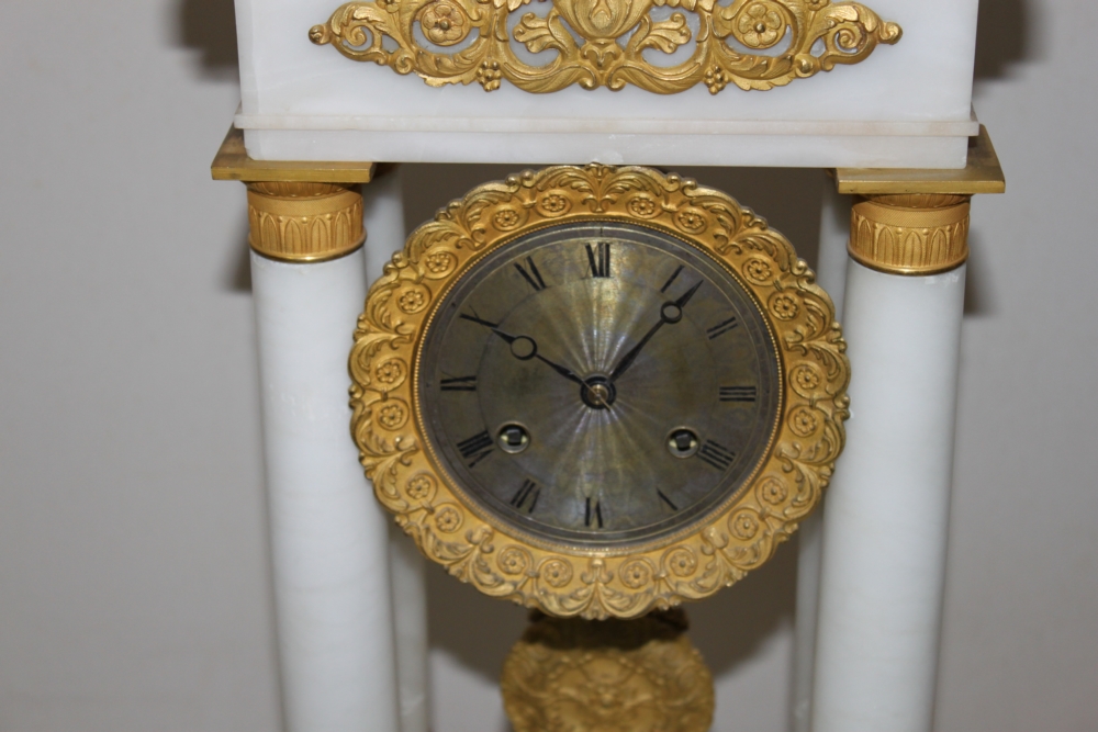 Säulenuhr aus Alabaster mit französischen Uhrwerk.
