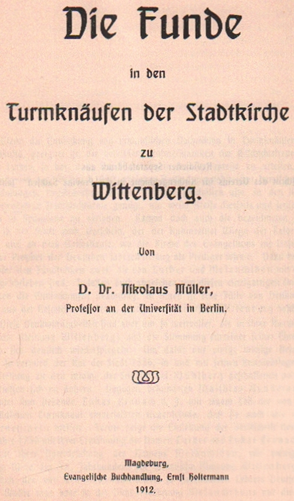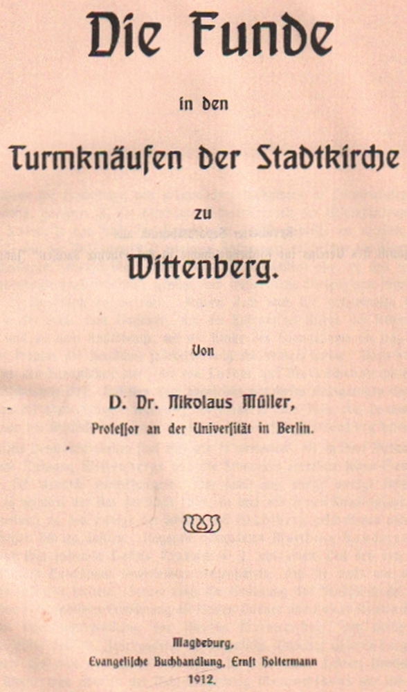 III.: Wittenberg. Ders, Die Funde in den Turmknäufen der