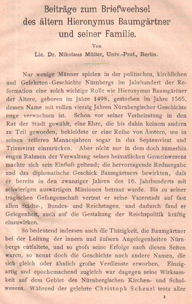 Baumgärtner und seiner. Familie. Sonderdruck, o. J. 26 S. Priv. Leinenband.