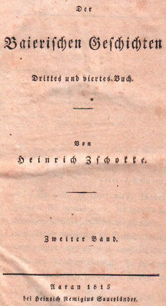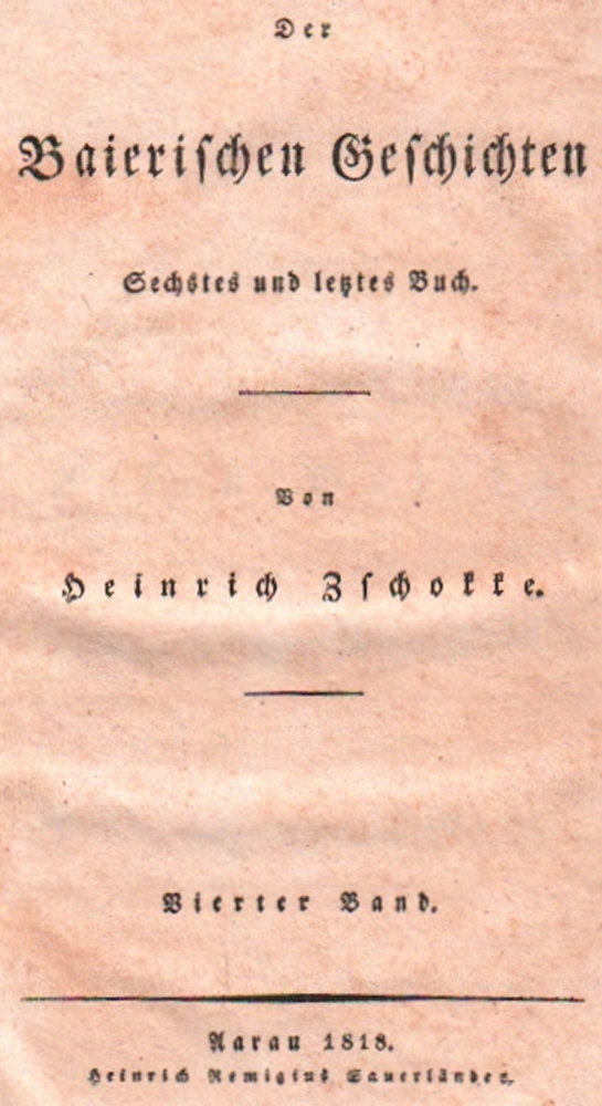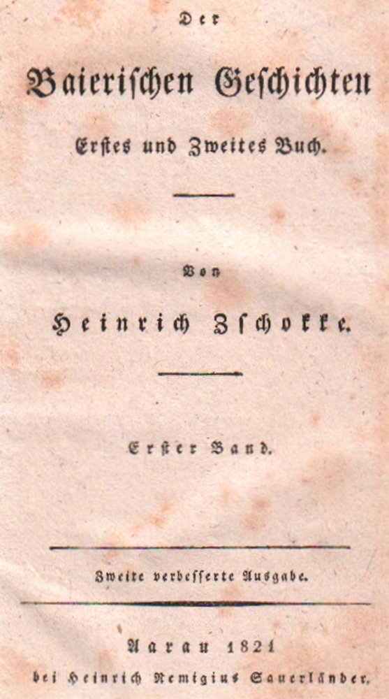 180 Bayern. Zschokke, Heinrich. Der Baierischen Geschichten - 1. bis 6. Buch in 4 Bänden. Verschiedene Auflagen. Aarau, Sauerländer, 1821. 8°. Nicht einheitliche braune Halblederbände mit farbigen Rückenschildern. (12)