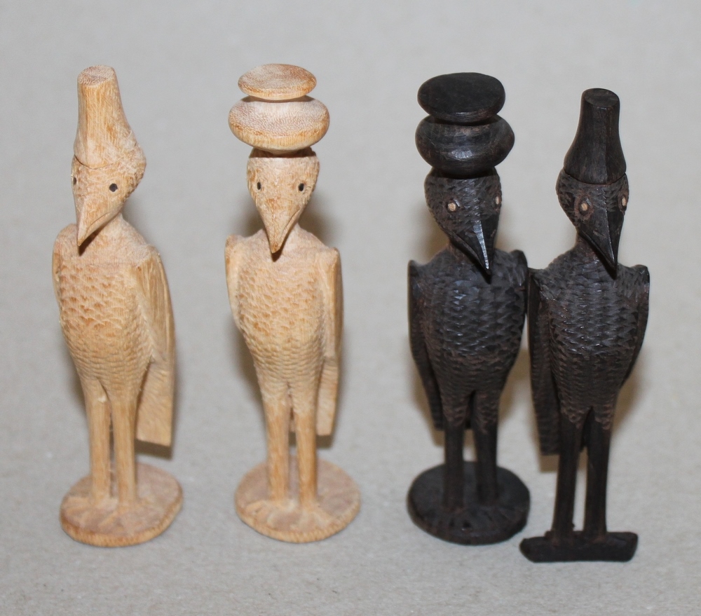 afrikanischen Stil gefertigt. Alle Schachfiguren als Vögel, bis auf die Springer