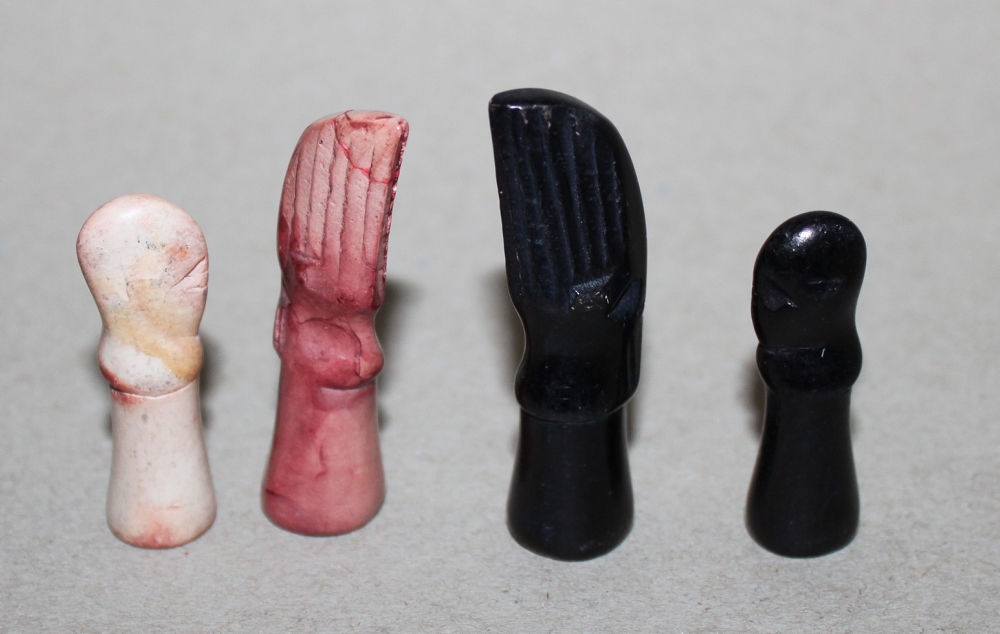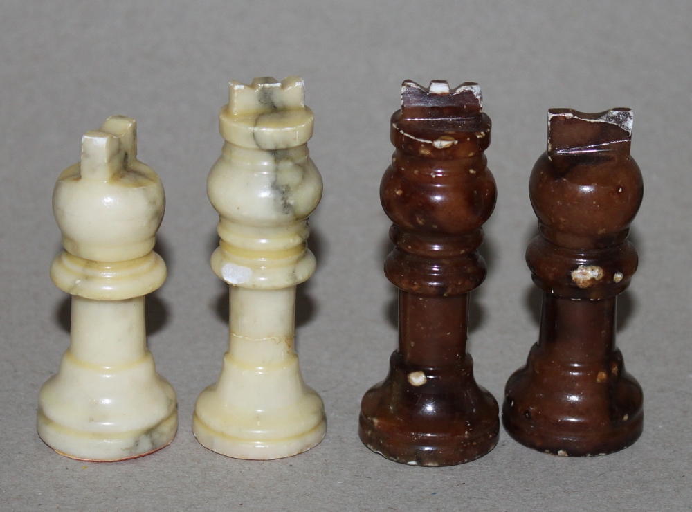 made of stone. All chessmen have minor chips and damages, a few of them with