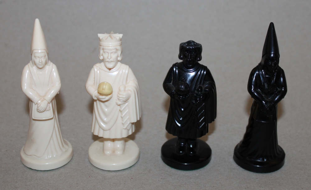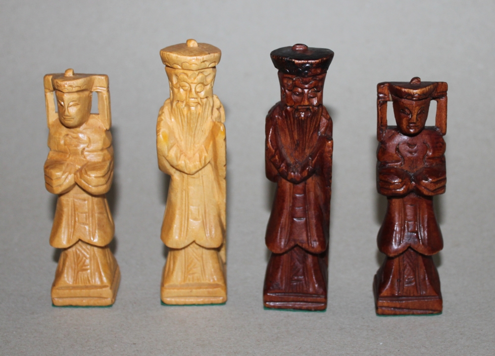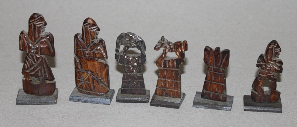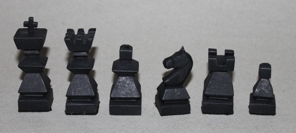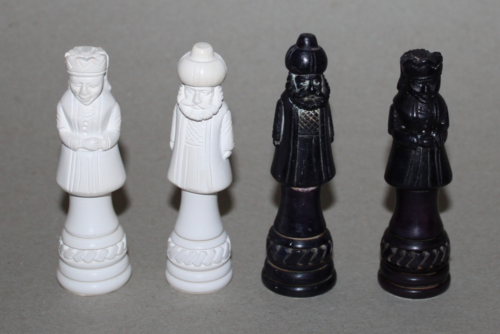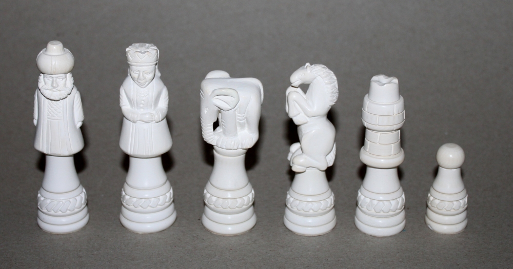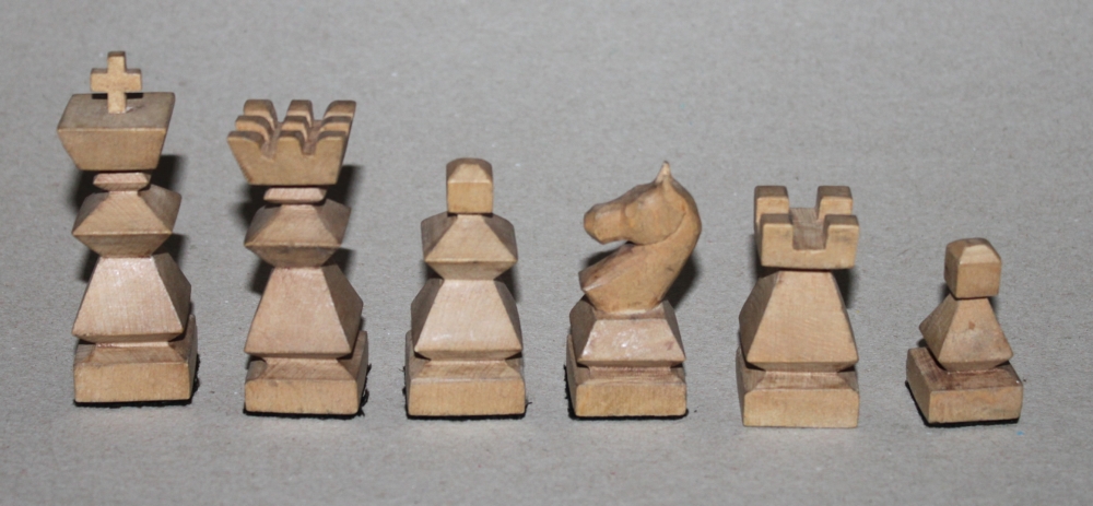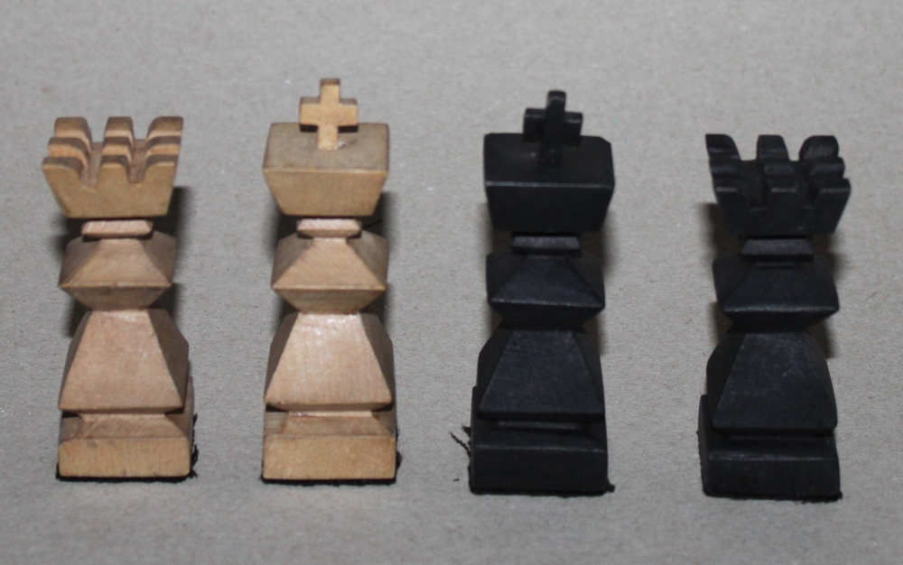 Schachspiel mit flach gearbeiteten Figuren nach Vorlagen aus dem