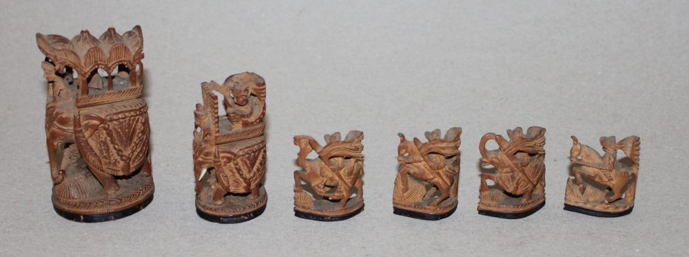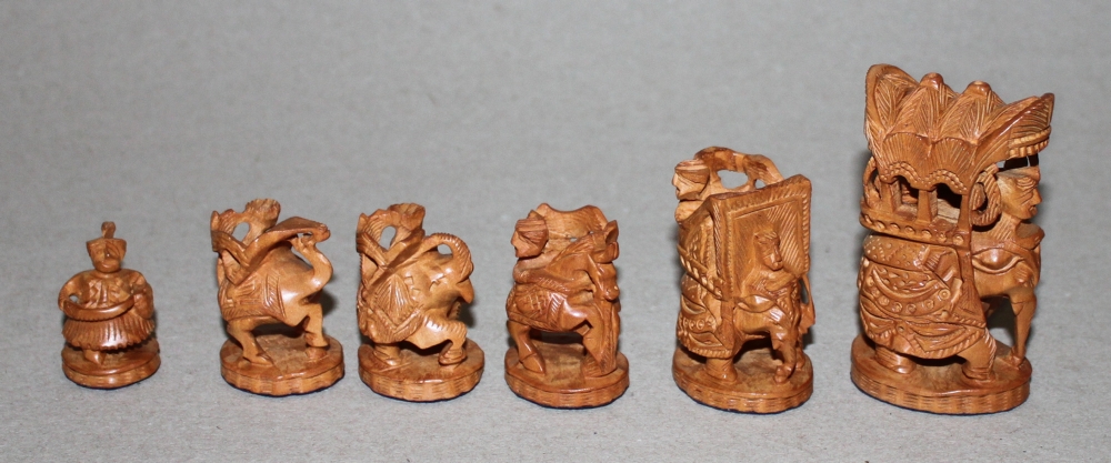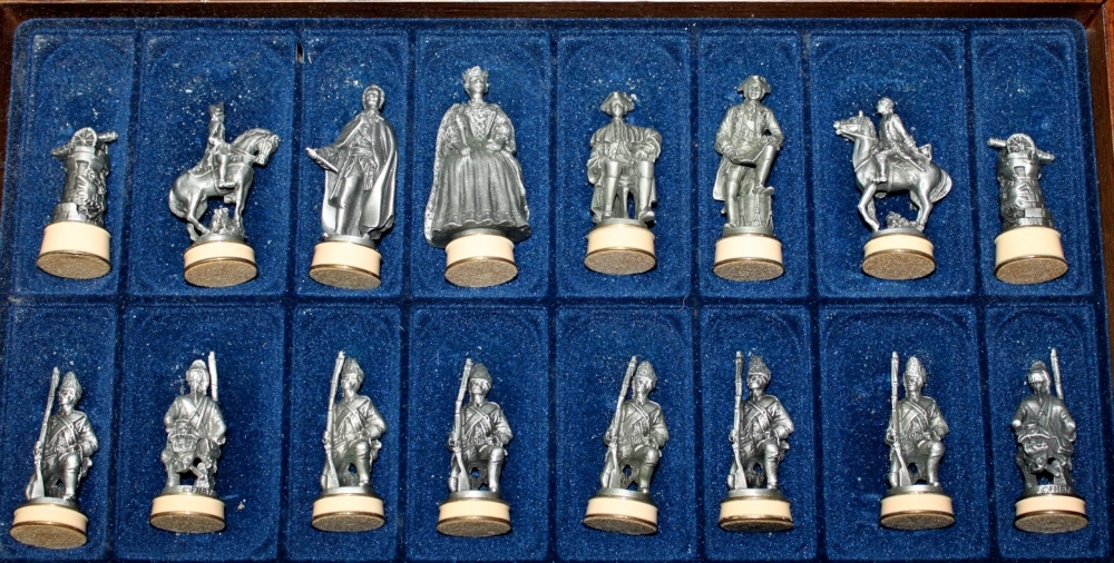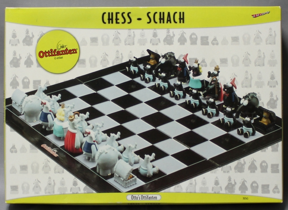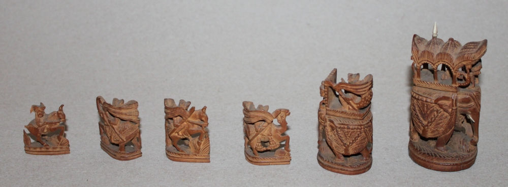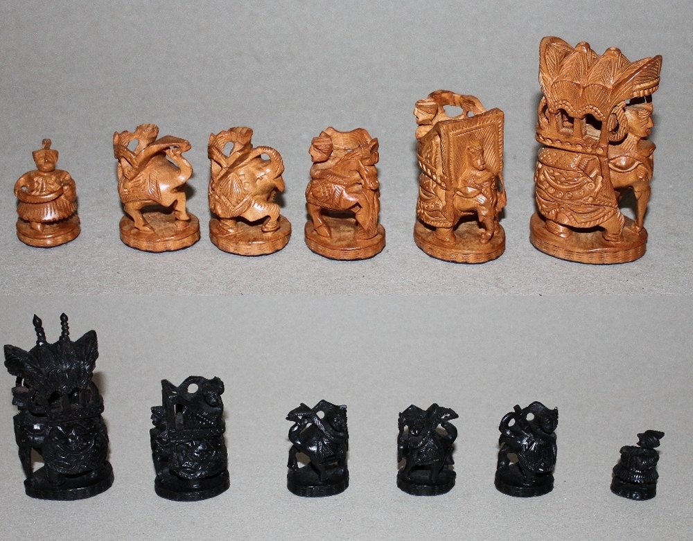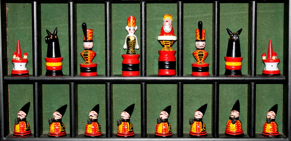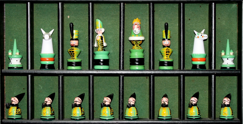 Schachspiel mit flach gearbeiteten Figuren nach Vorlagen aus dem