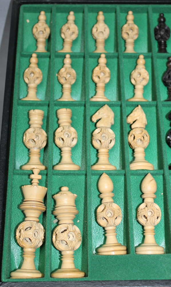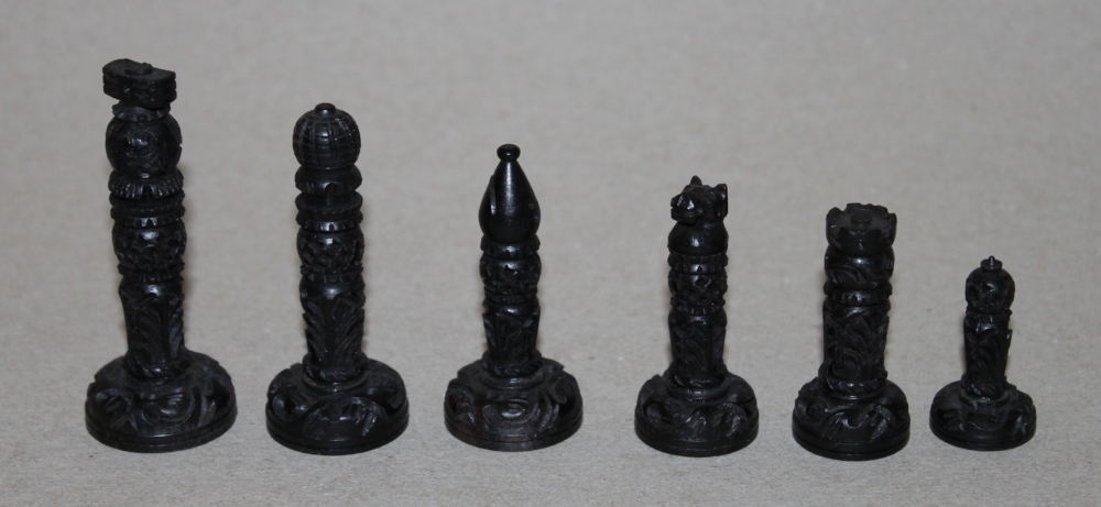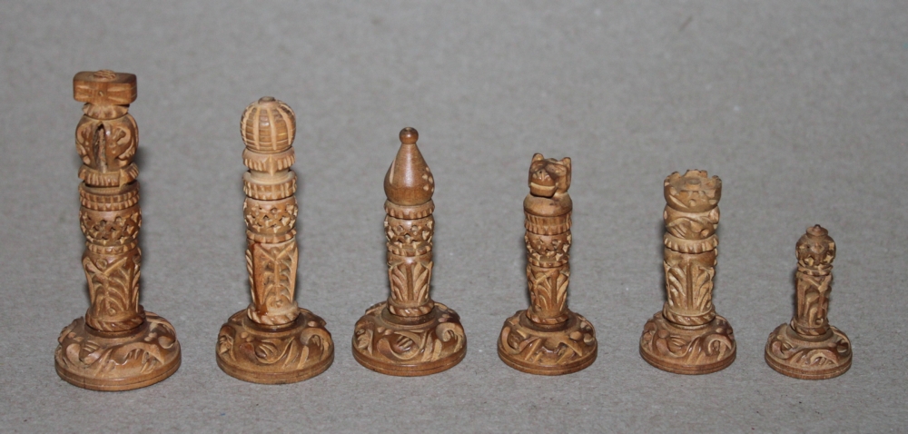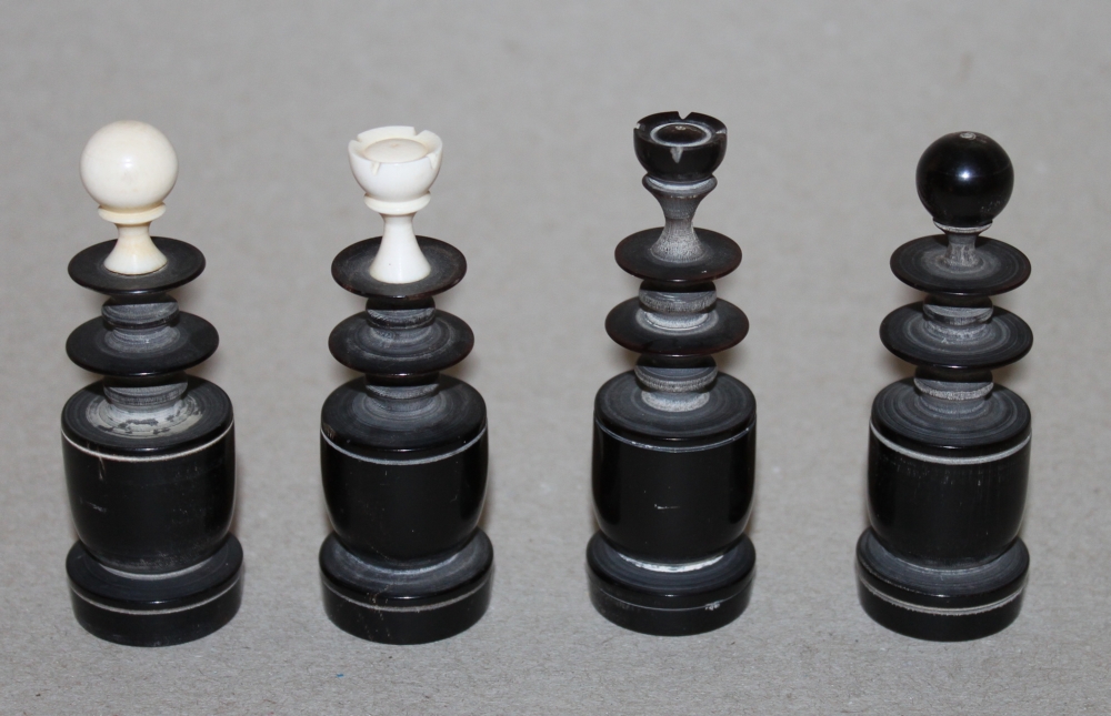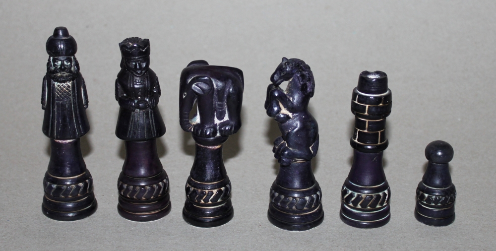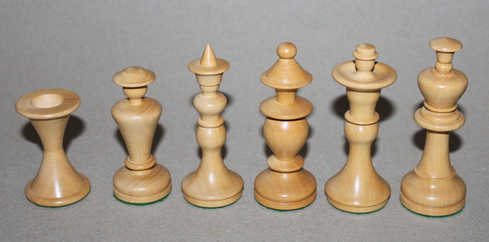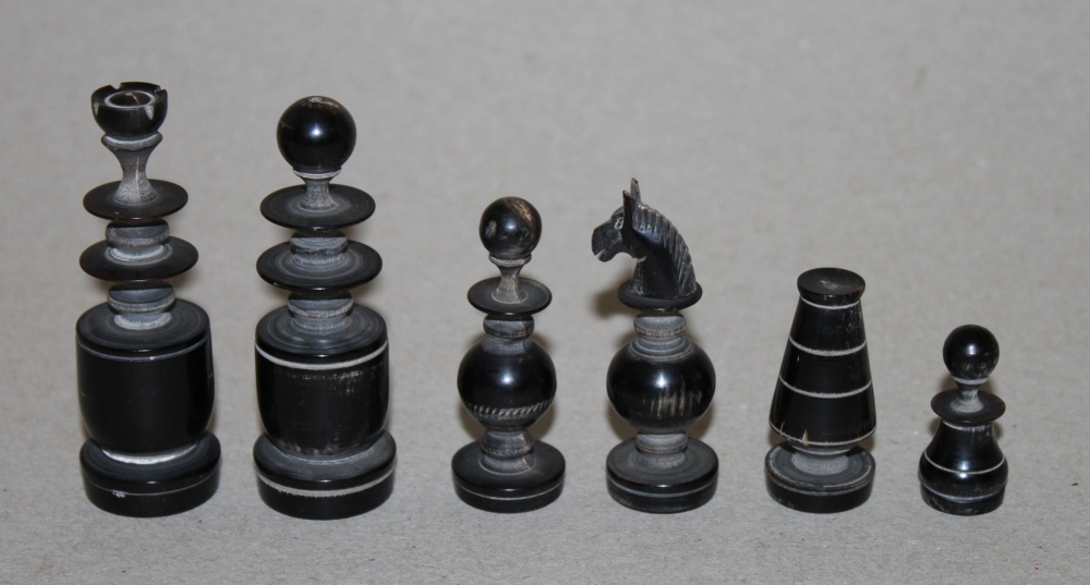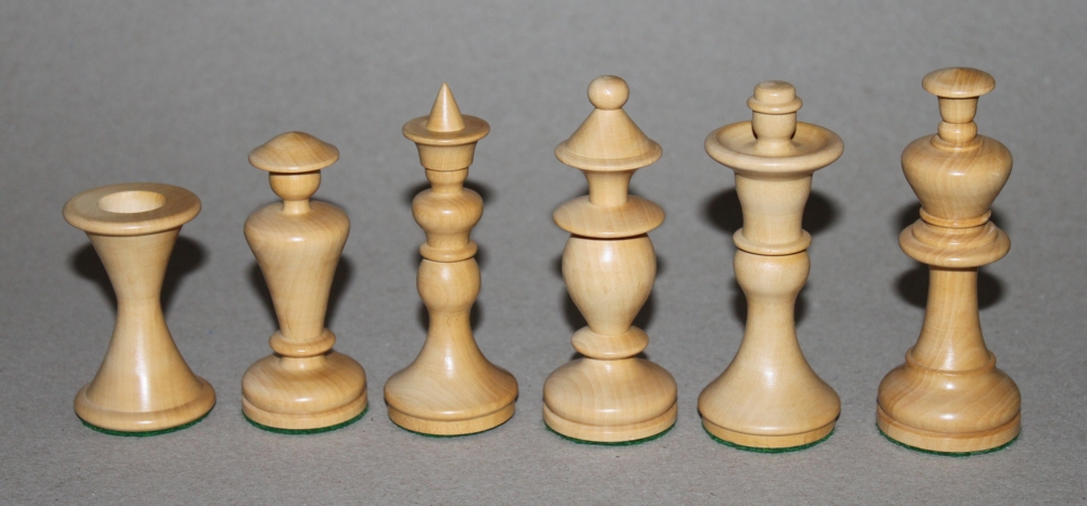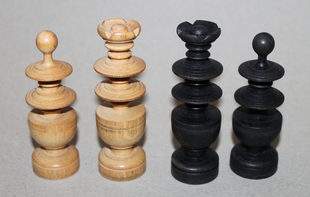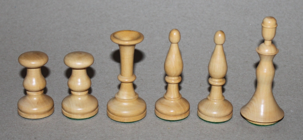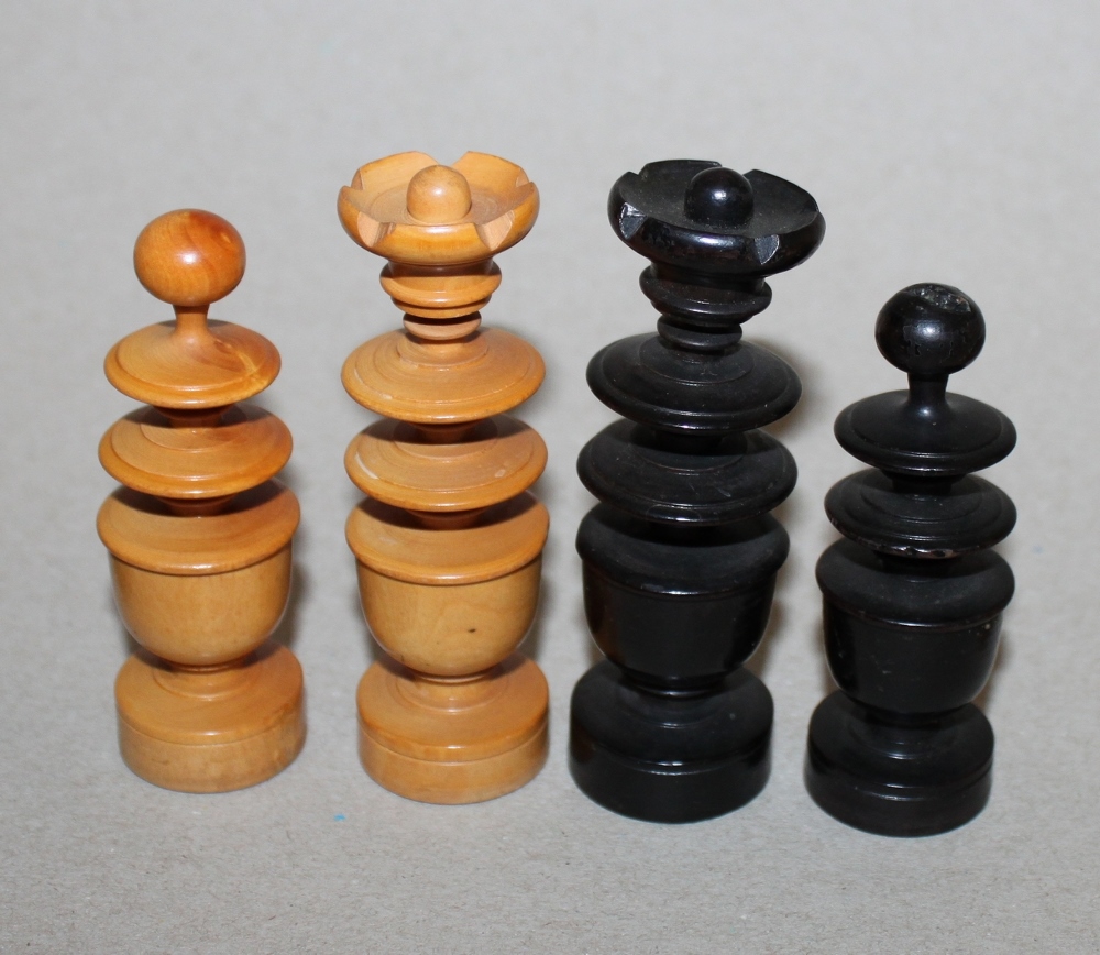 century. King 9,2 cm high, pawn 6 cm. Complete chess set. All chessmen are