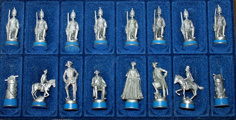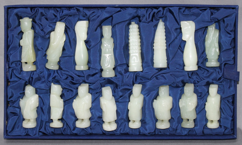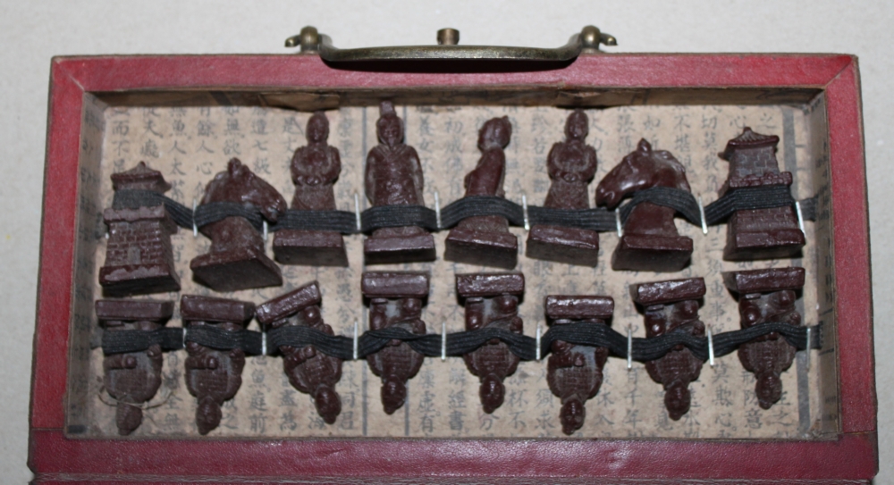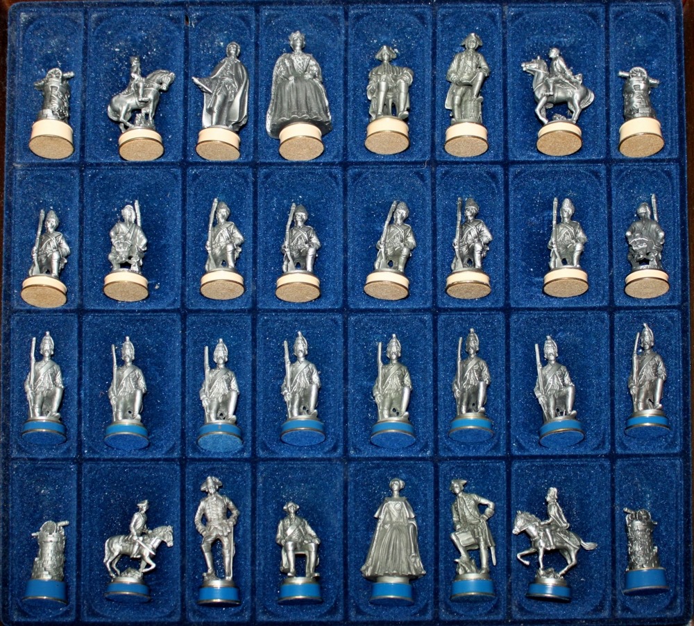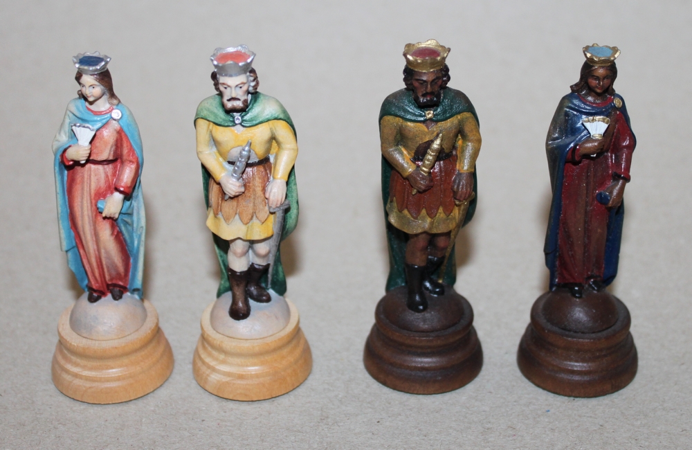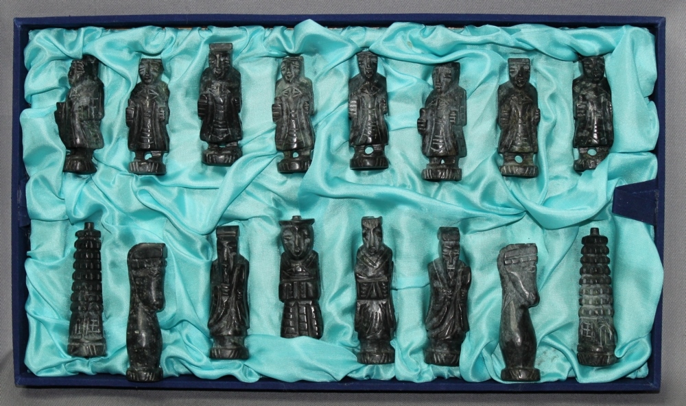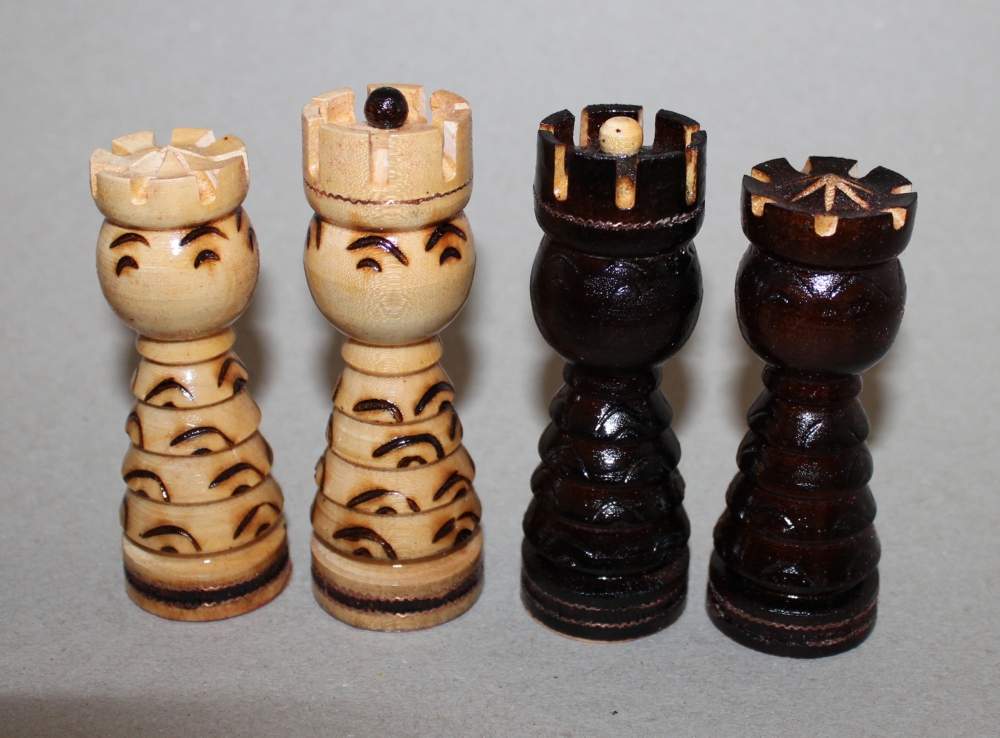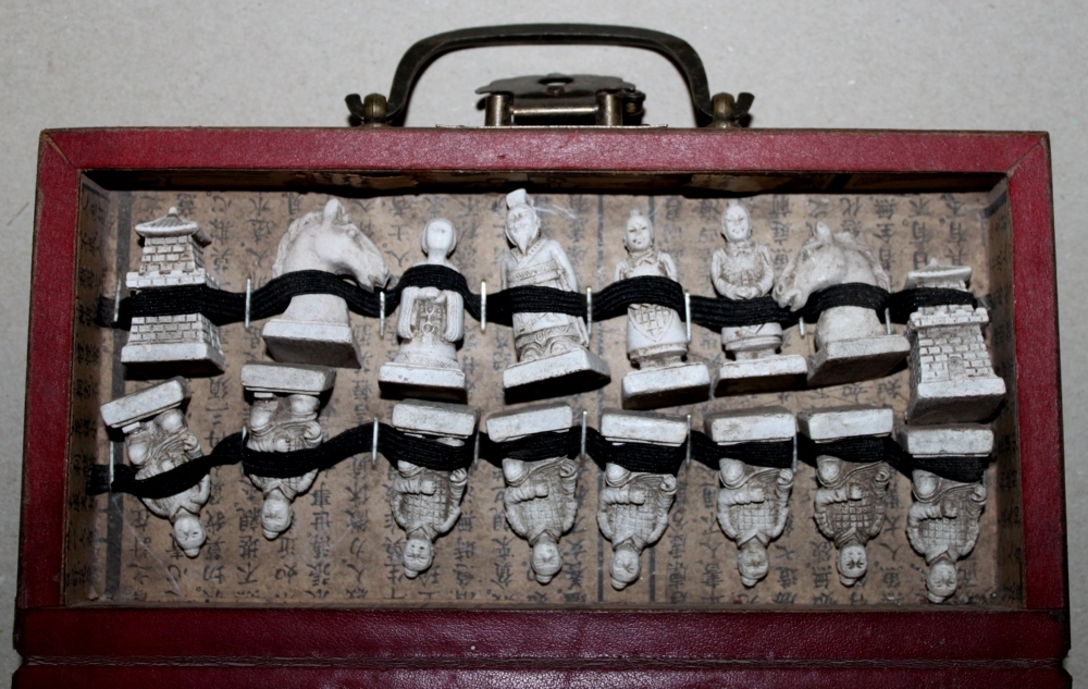 decorations. All chessmen are dusty and have signs of use, with minor chips