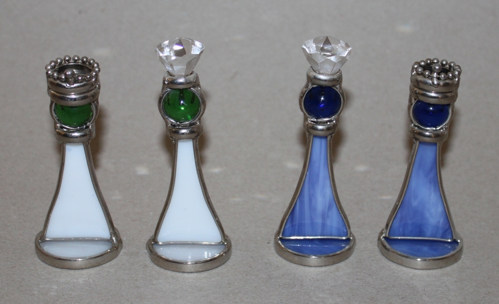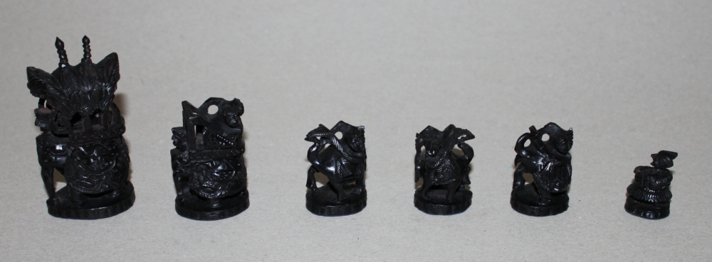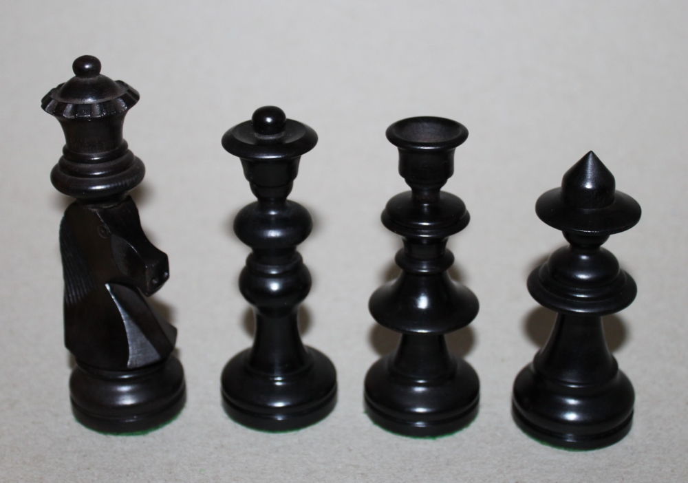 Eine Vogelschachfigur (Schwarze Dame) ohne Standfuß. Alle Figuren haben