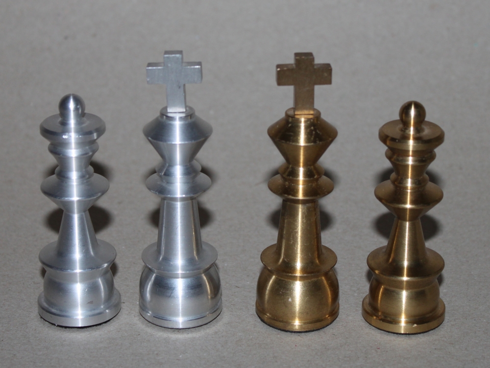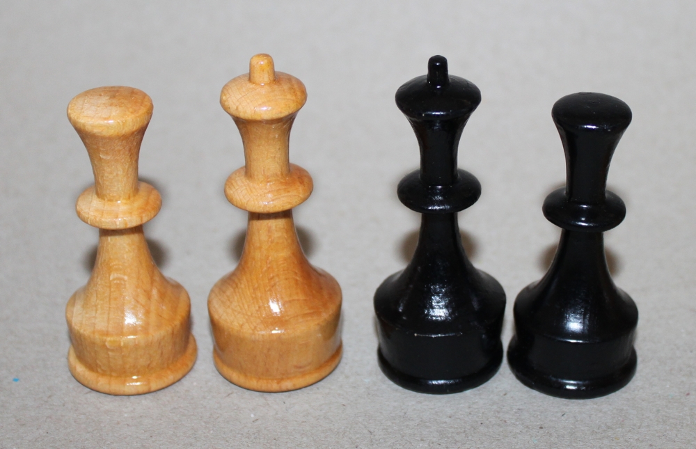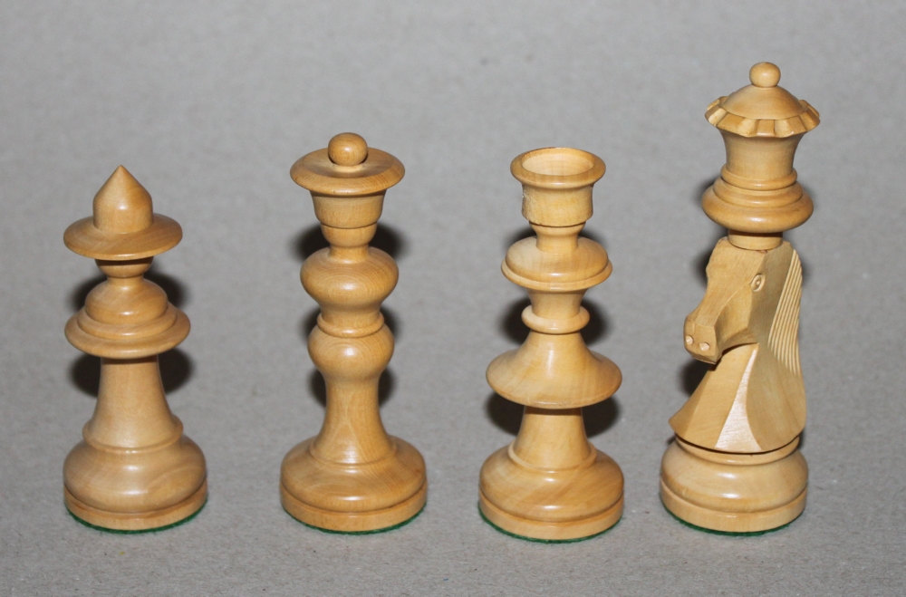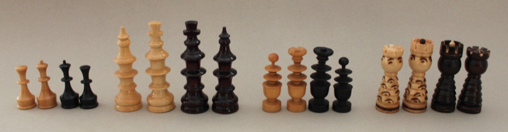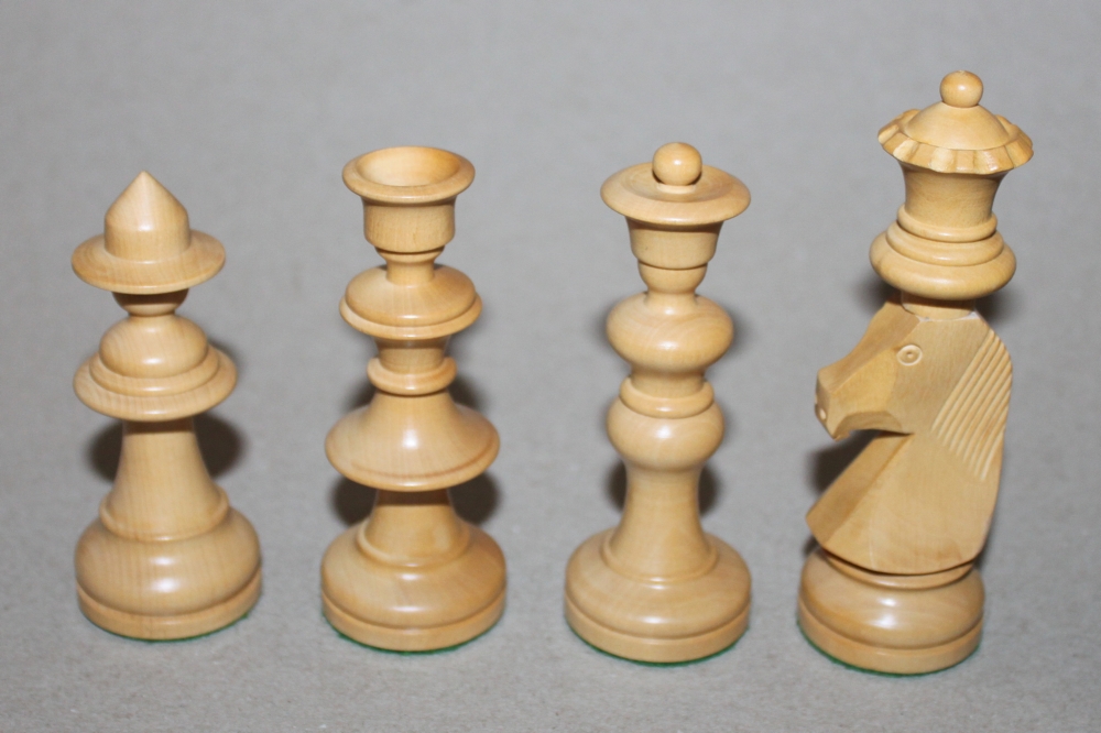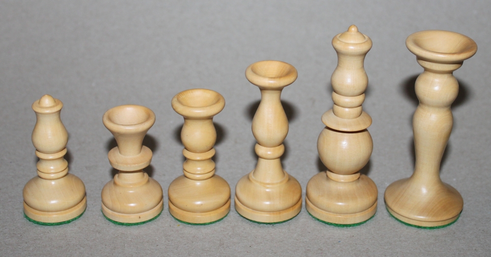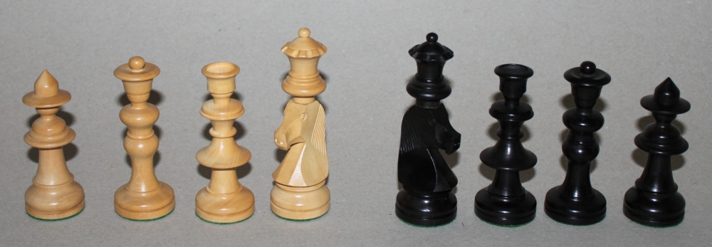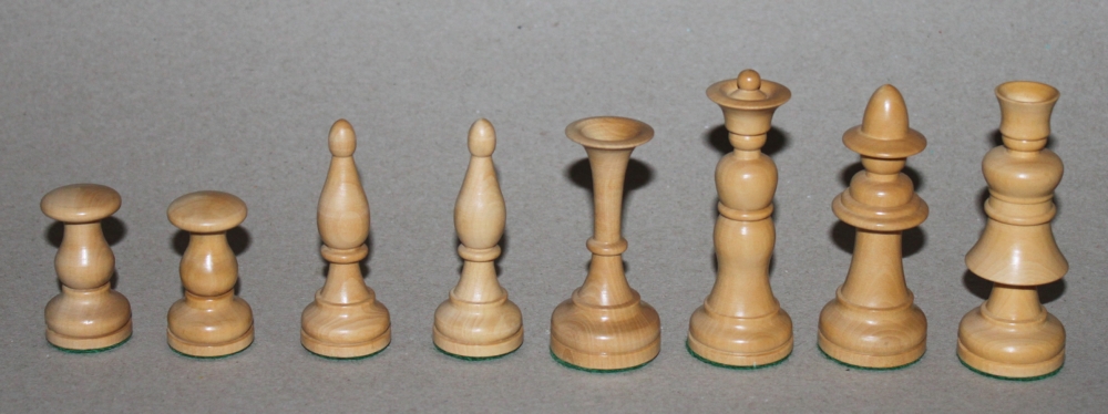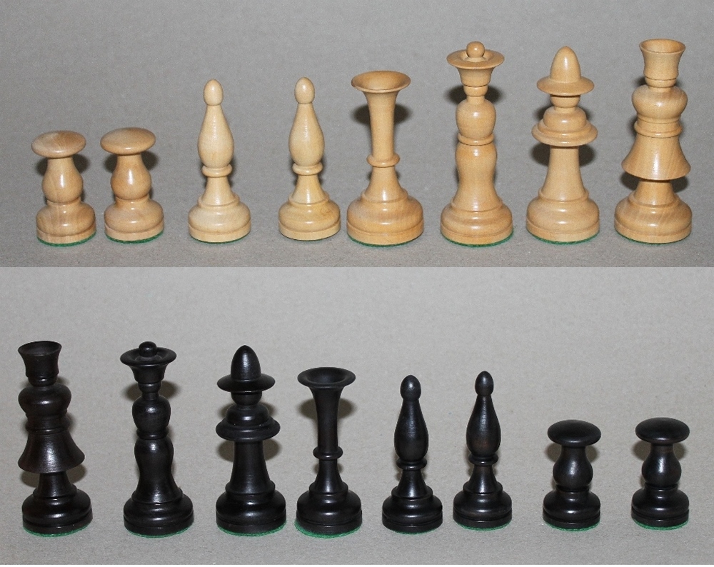 and 7 cm high, pawns 6,5 cm and 4,5 cm.