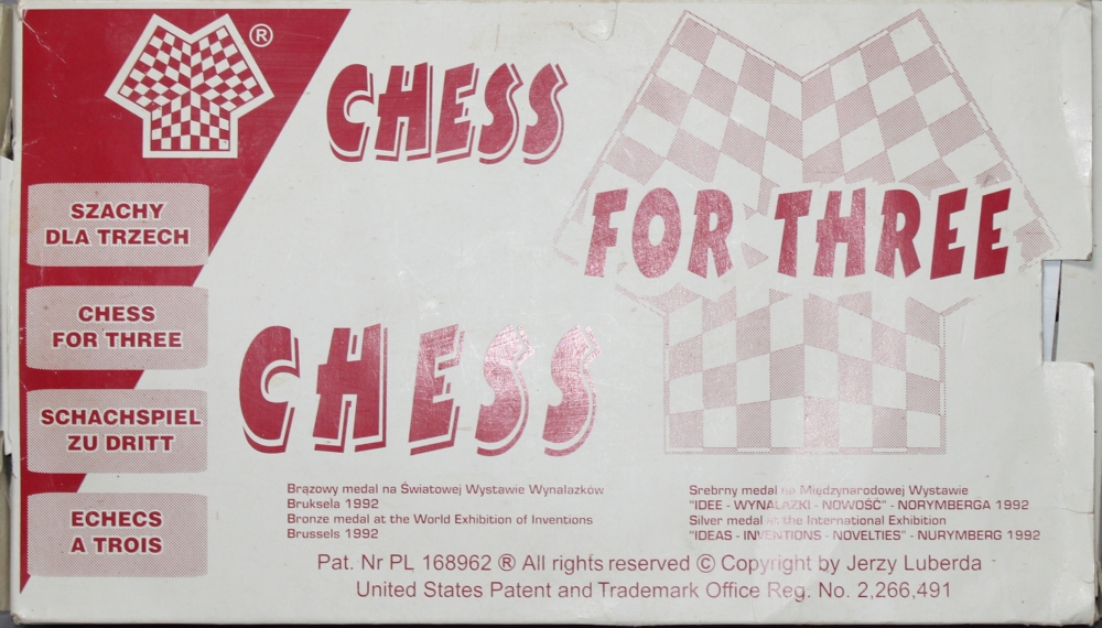 Poland. [Chess for Three – three complete sets] “Szachy dla Trzech”. One party in red, middle - brown and natural color. Production from the