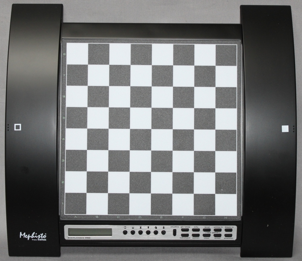 #334 Deutschland. Schachcomputer. Mephisto – Explorer Pro from Saitek. Schachcomputer mit Bedienungsanleitung, Netzteil und Spielfiguren. Deutschland, um 2010. Abmessungen 33,5 x 30 x 4 cm. (26)