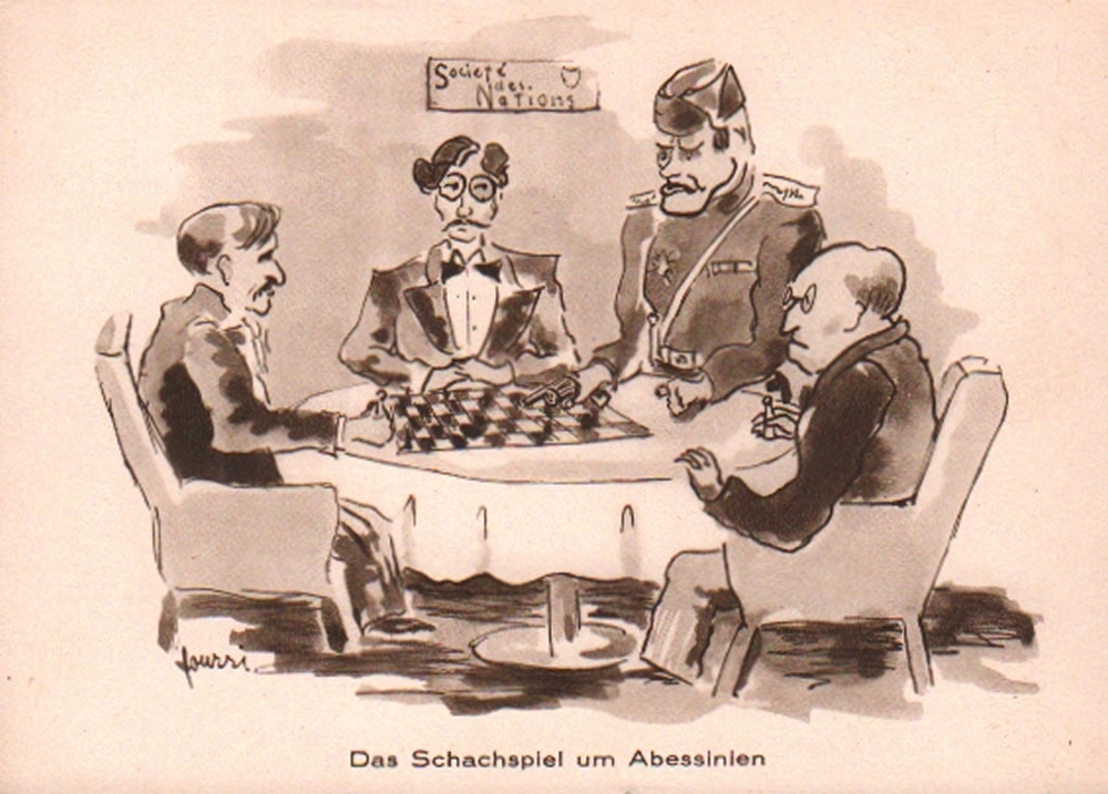 Schachspiel, meist nach Karikaturen, künstlerischen Darstellungen und Fotos.