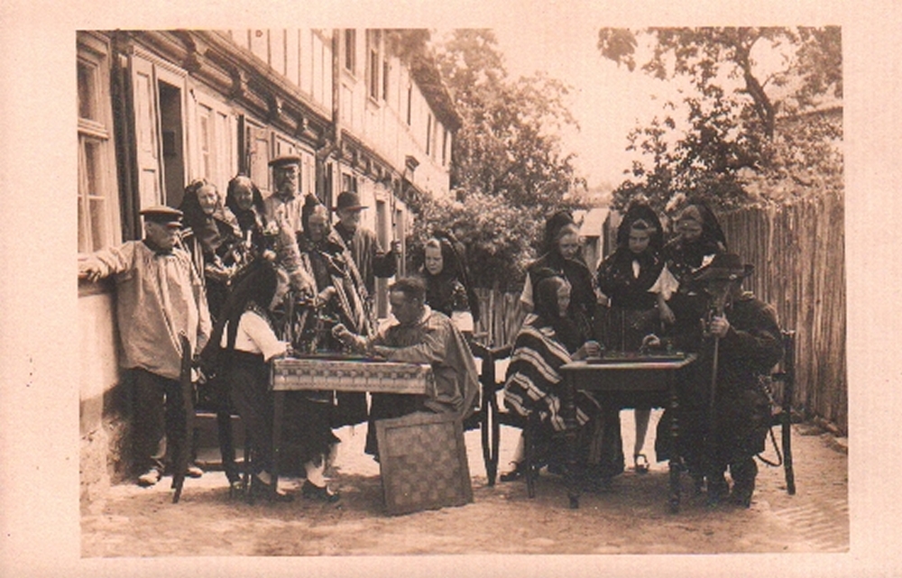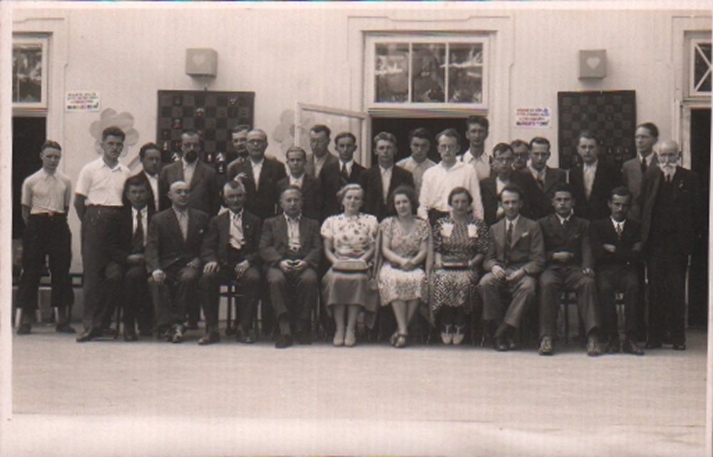 10 Teilnehmer am Turnier in Vilnius 1937, die sich in einem Raum
