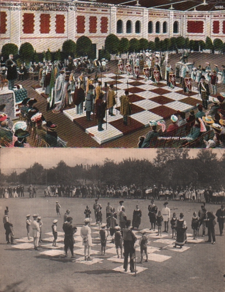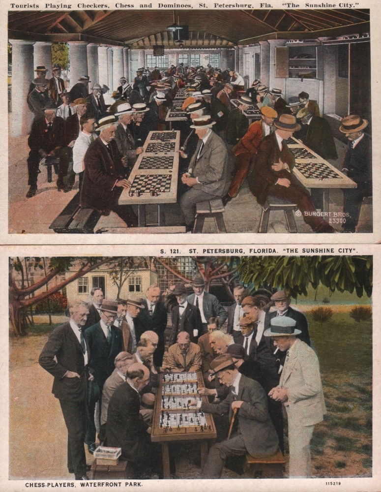 beim Schachspiel in verschiedenen Räumen, vor Gebäuden oder im Freien.