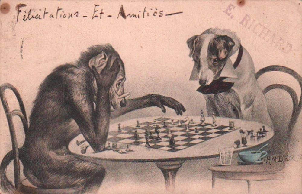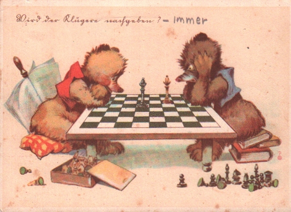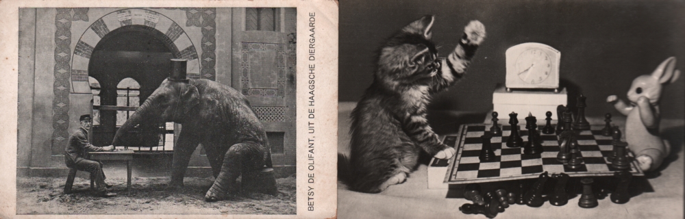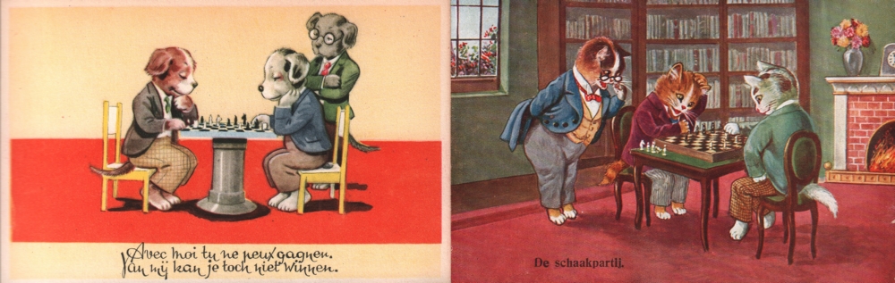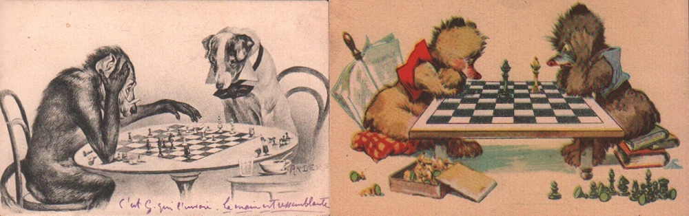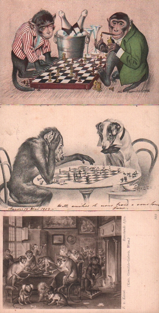 #475 Postkarte. Tiere beim Schachspiel. 12, teils farbige und teils postalisch gelaufene Postkarten aus dem 20. Jahrhundert. Größe jeweils ca. 14 x 9 cm. (40)