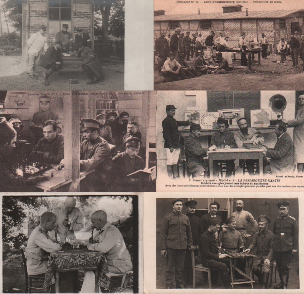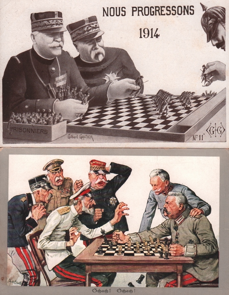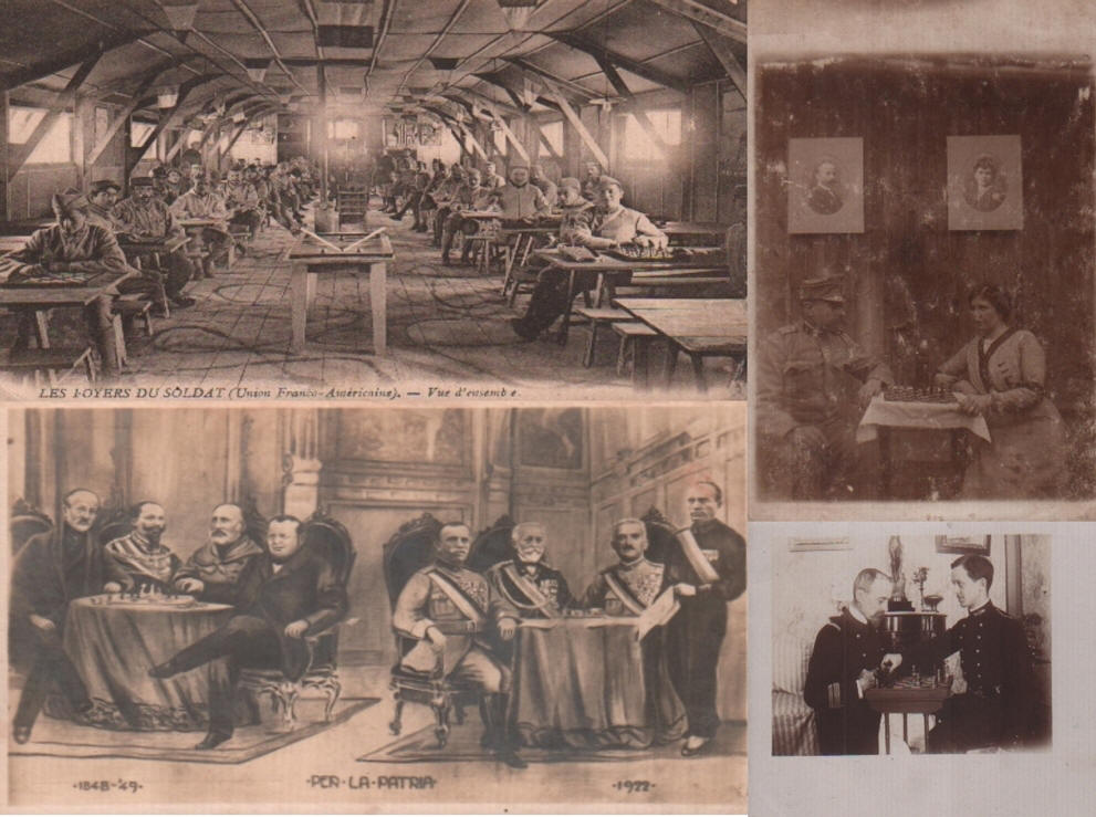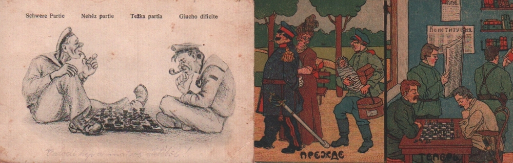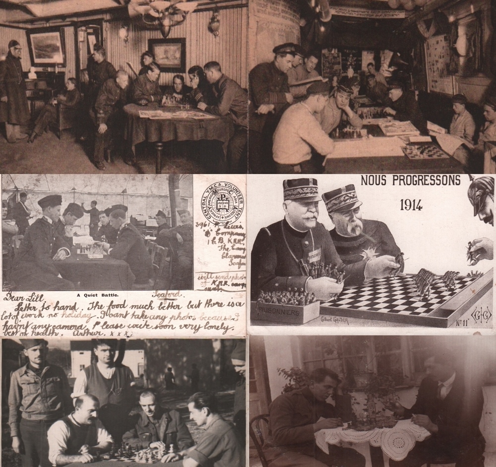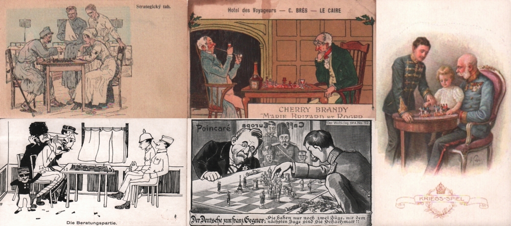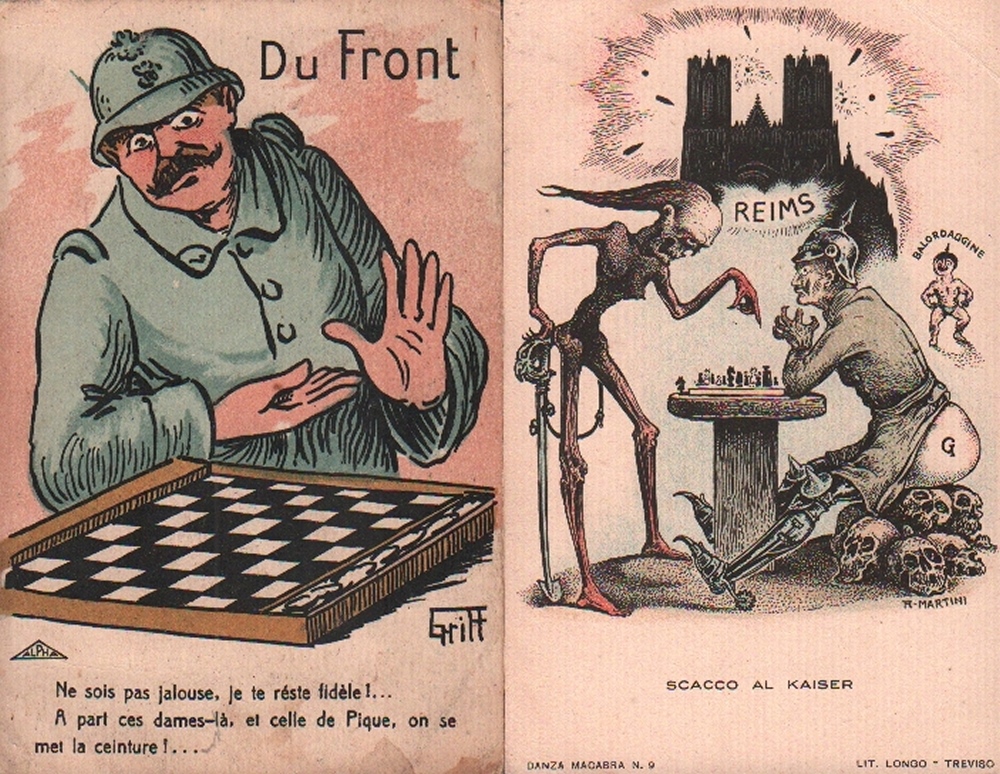 * Die Karten zeigen meist Soldaten beim Schachspiel in