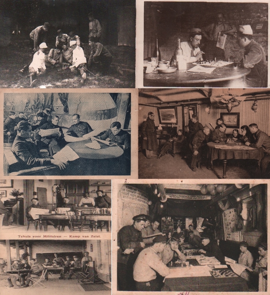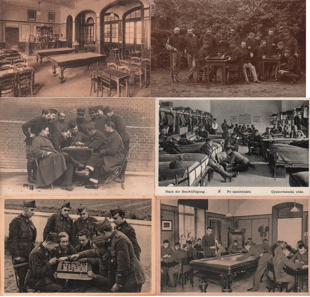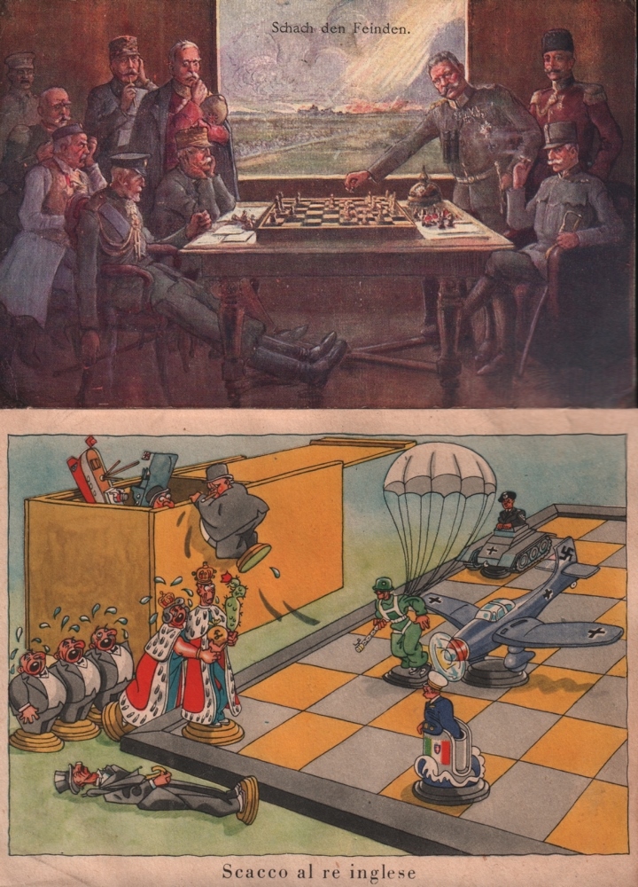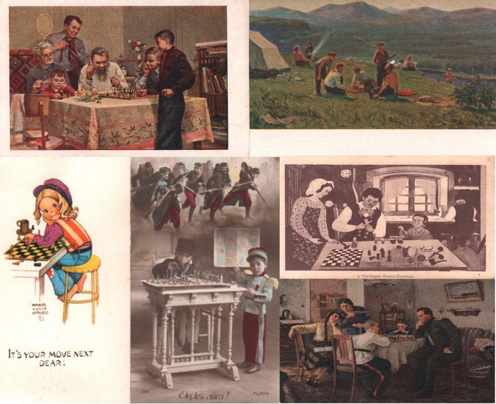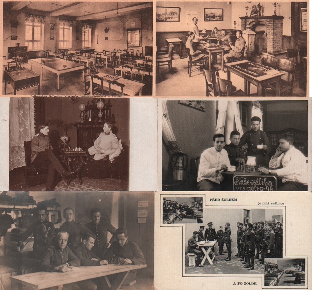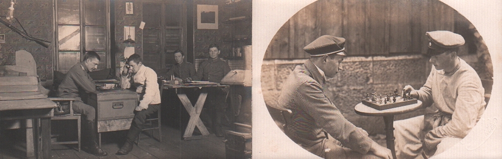 * Die Karten zeigen meist Soldaten beim Schachspiel in
