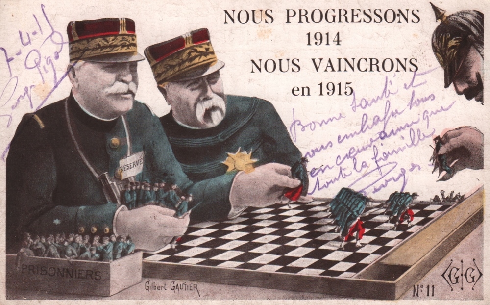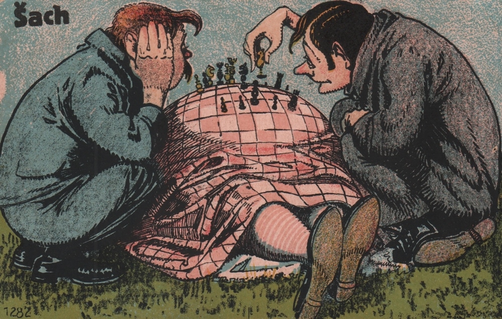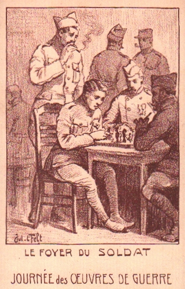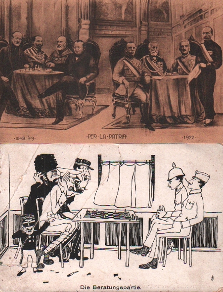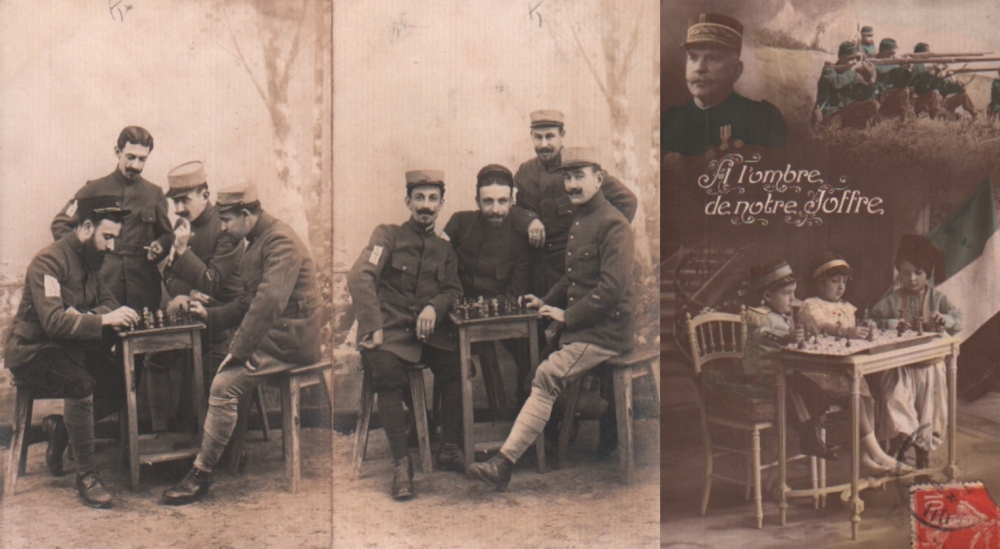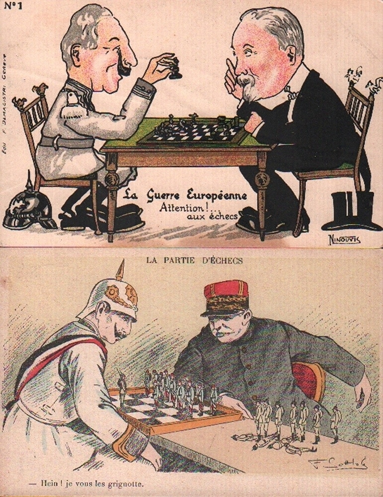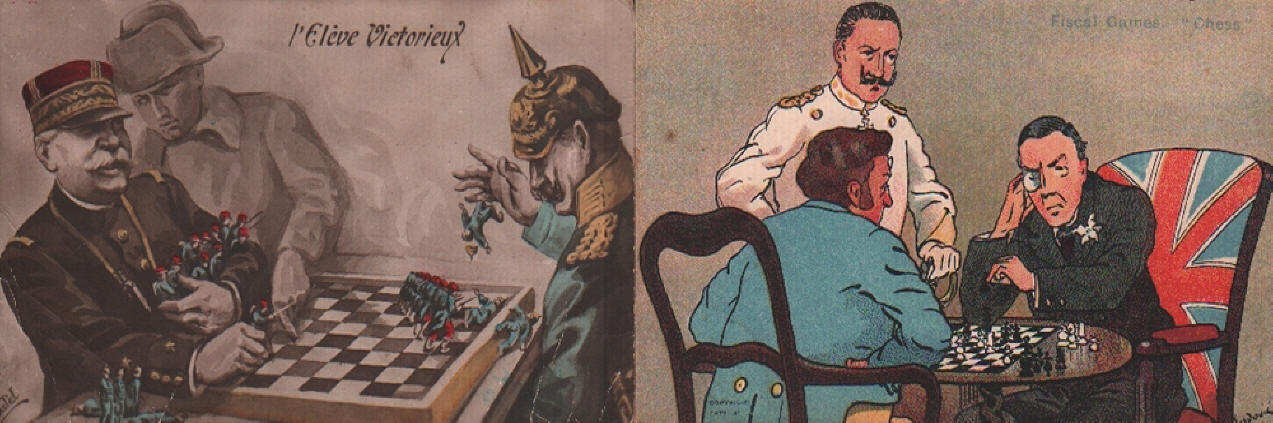 * Die Karten zeigen meist Soldaten beim Schachspiel in