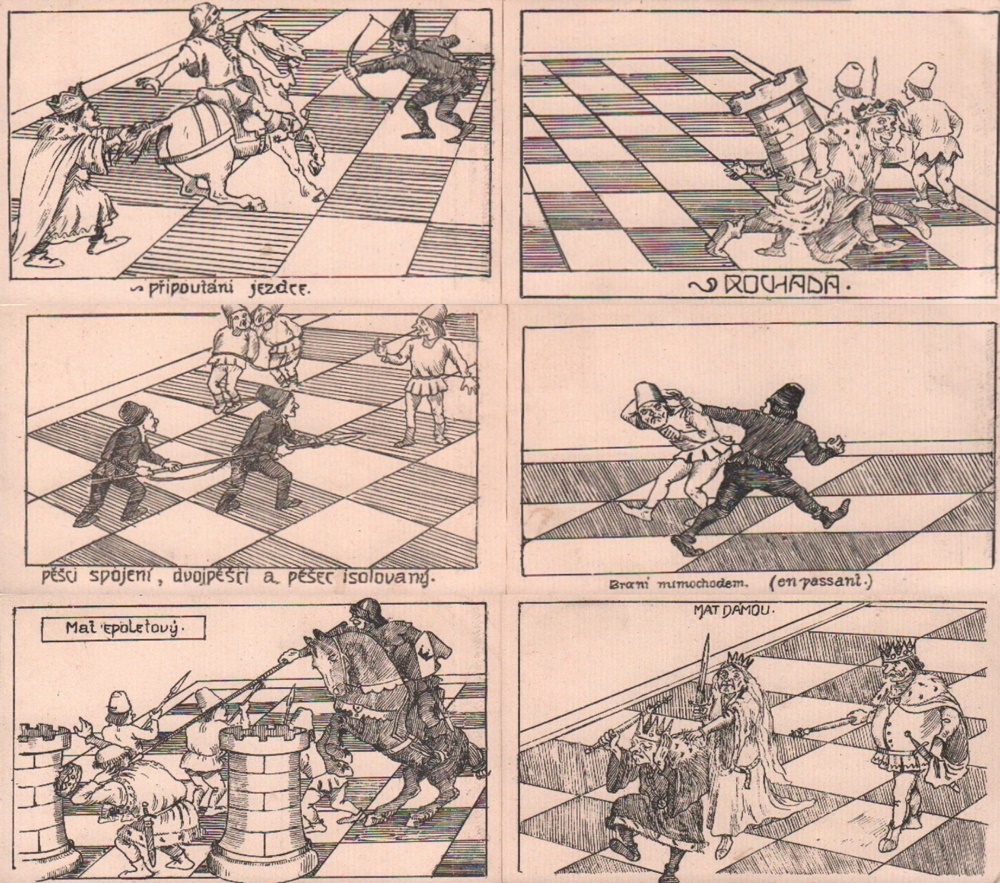 * Die Karten zeigen meist ein Schachmotiv, das zu den jeweiligen