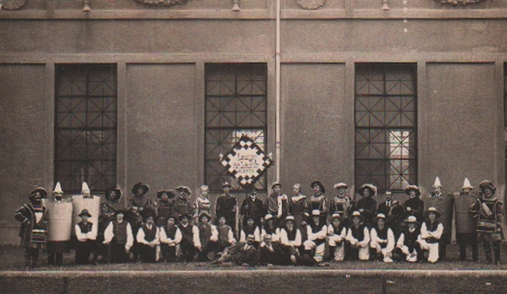Eröffnungszug macht. Über der Szene hat das Fotoatelier einen kurzen Text