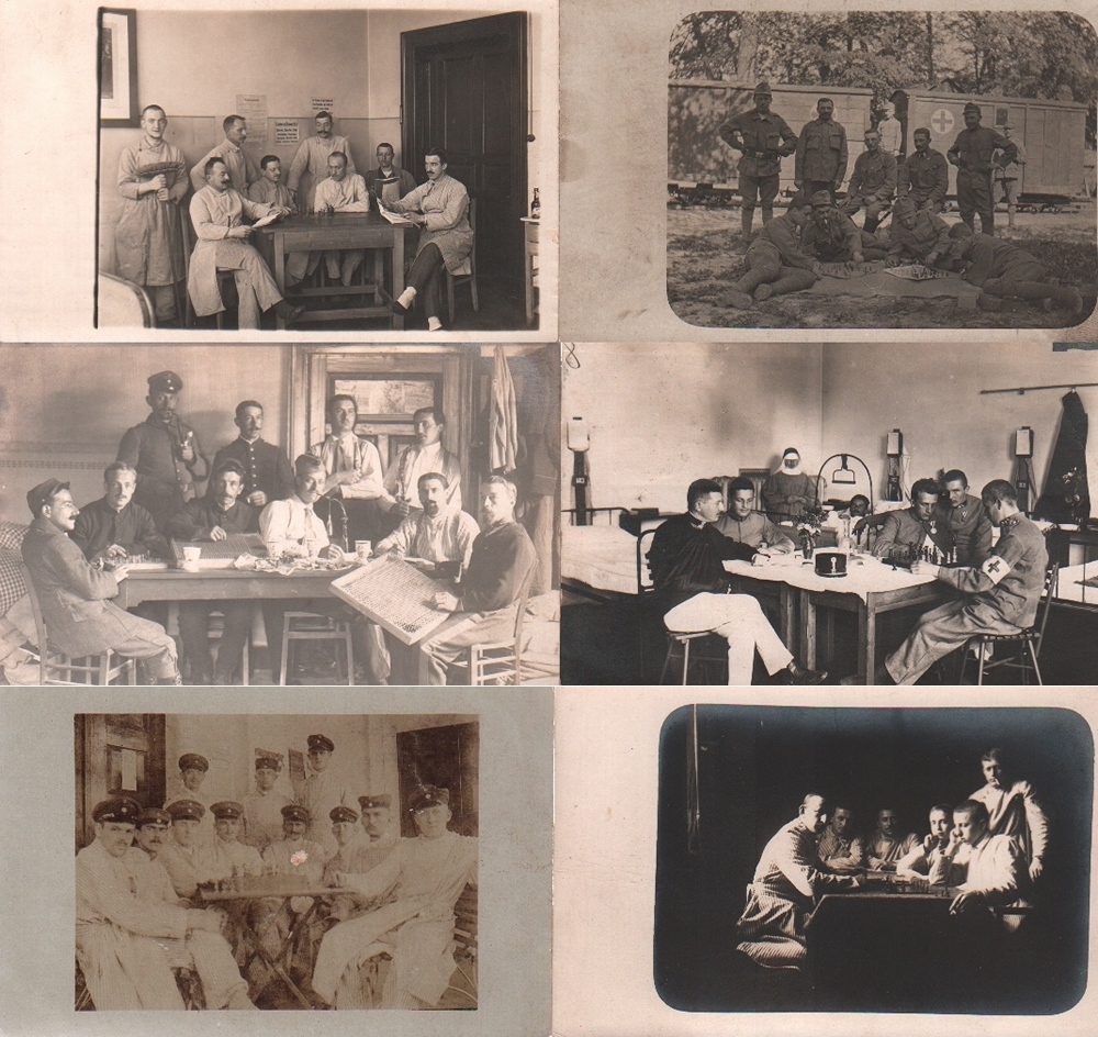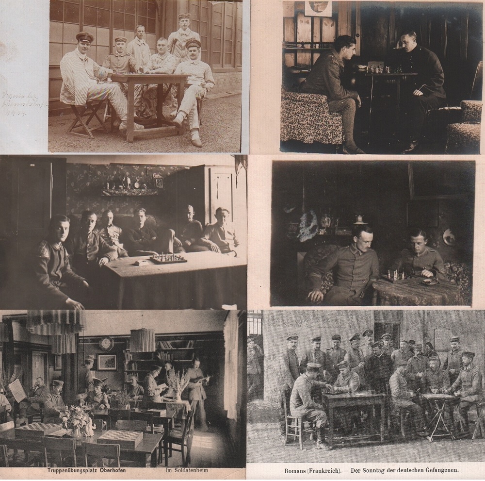 #471 Postkarte. Soldaten und Sanitätspersonal beim Schachspiel. 12 schwarzweiße und teilweise postalisch gelaufene Postkarten aus den 1910er und 1920er Jahren. Größe jeweils ca. 14 x 9 cm. (40)