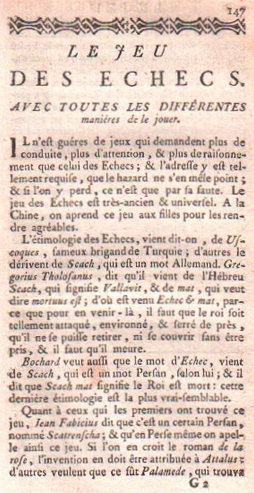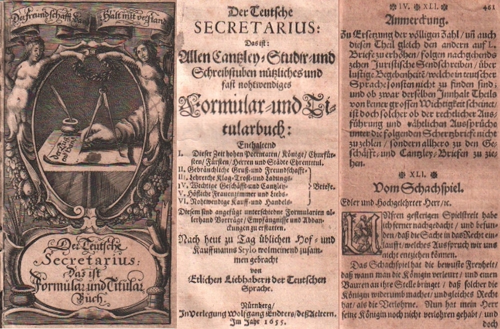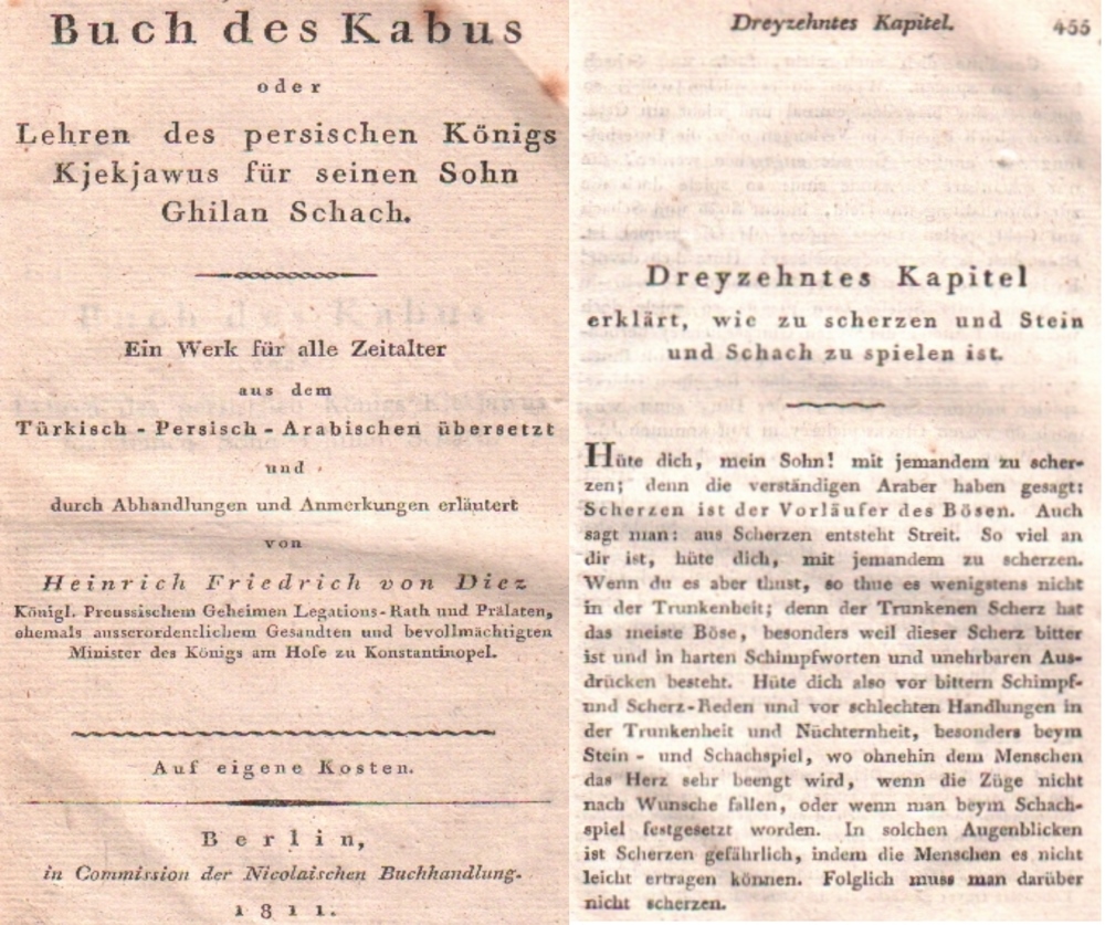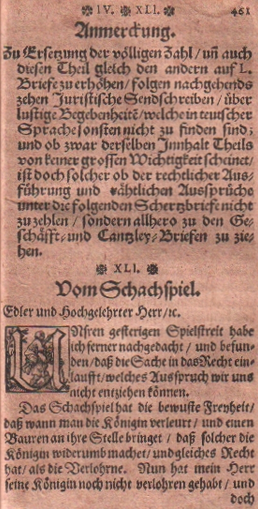 und seine Regeln, danach Beschreibung von Partien in verschiedenen Fassungen.