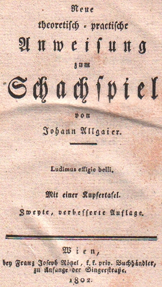 benannte Gambit Allgaier's aus ..." Johann Allgaier (1763 - 1823) war deutscher