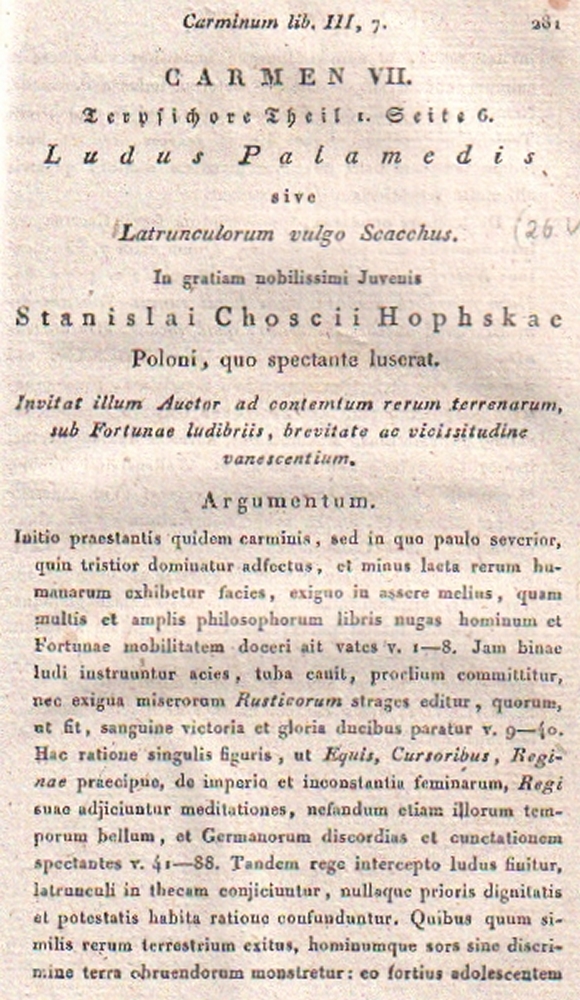Palamedis, sive Latrunculorum vulgo Scacchus“ mit dem lateinischen Text von