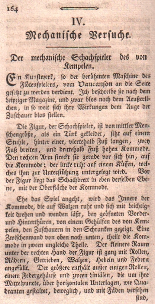 den Schachautomaten von Kempelen: “Der mechanische Schachspieler des Herrn von