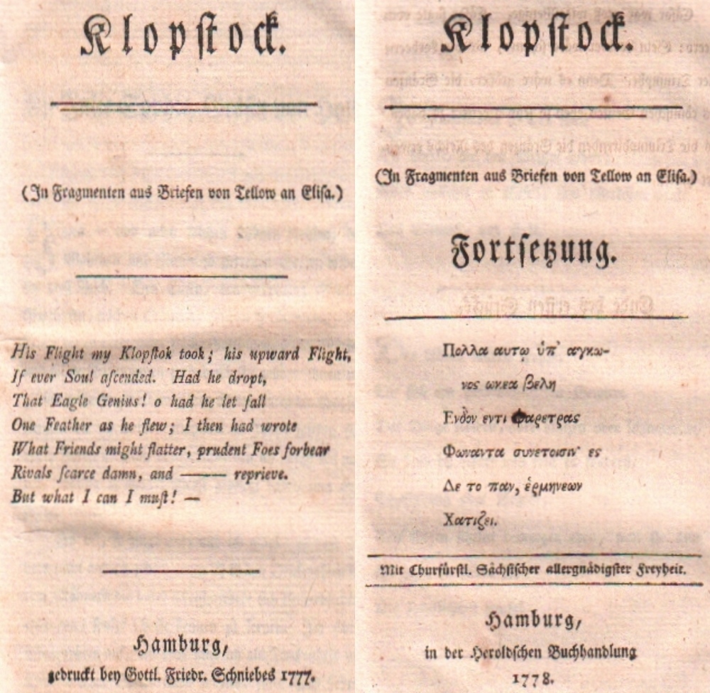 1777) Goedeke IV, 1, 836, 2; Hayn - G. VIII, 435; vergl. Kieler Schachkatalog