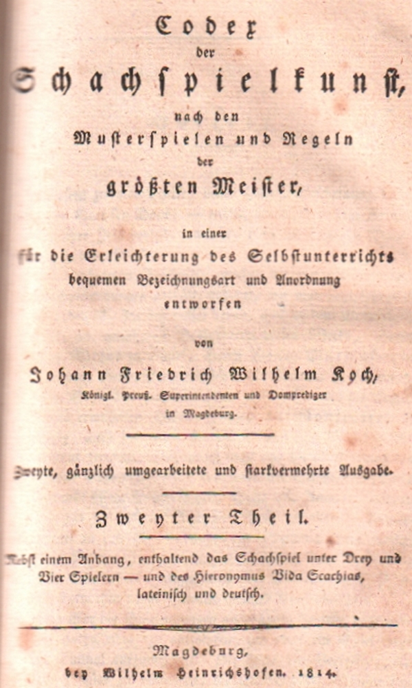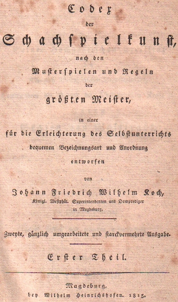 ... Anweisung zum Schachspiele ... ohne Zweifel der erste Platz