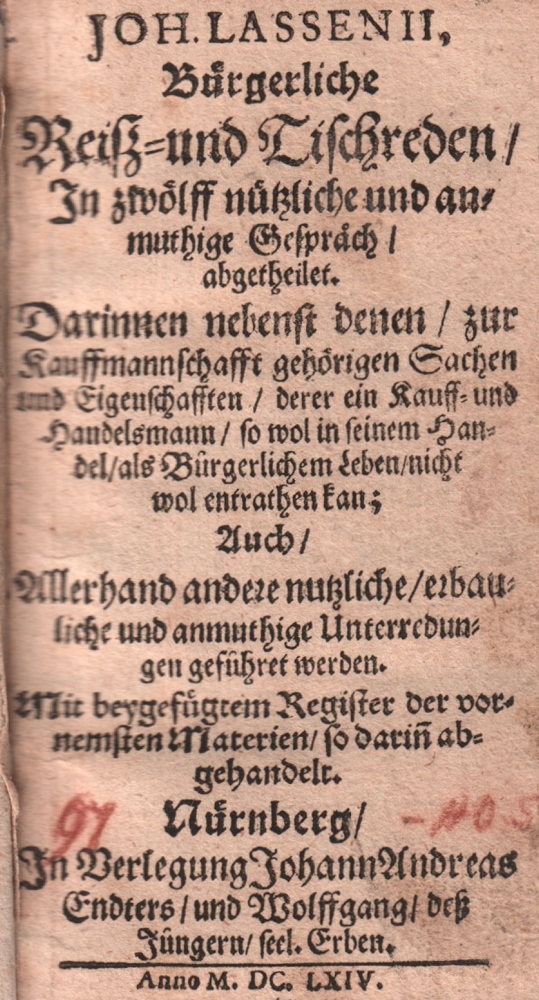 Stempel auf Vorsatz, Titel und Inhalt des 1. Teils. Innen gebräunt und