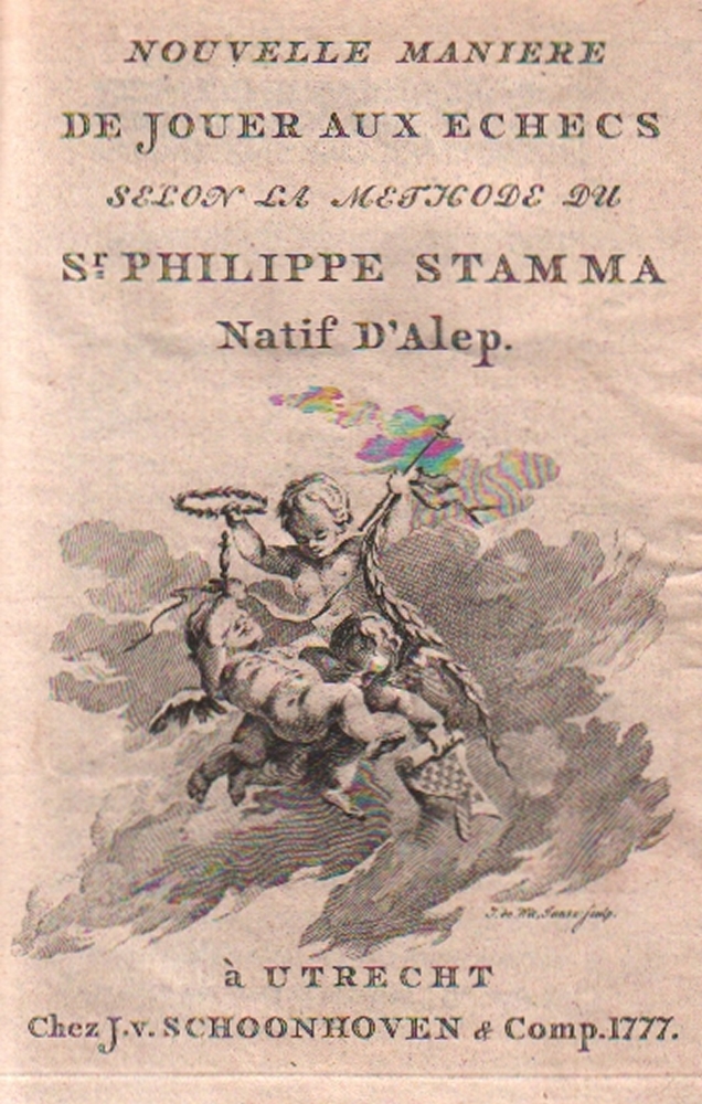 617 Stamma, Philippe. Nouvelle manière de jouer aux échecs selon la méthode du Sr. Philippe Stamma natif d'Alep. Utrecht, Schoonhoven, 1777. Kl. - 8°. Mit gestochenem Titel und 2 Textkupfern als Zierstücke. XXXI, 163 Seiten (1 Bl. weiß fehlt). Brauner Halblederband. (49)
