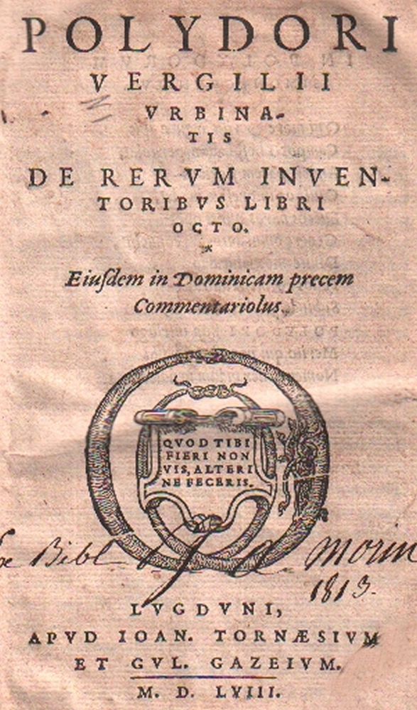 “Polydori Vergilii Urbinatis de rerum inventoribus (Lib. II Cap. XIII) das