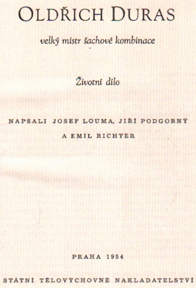 Oldrich Duras velký mistr sachové kombinace. Zivotní dílo; J. Podgorný: Jan