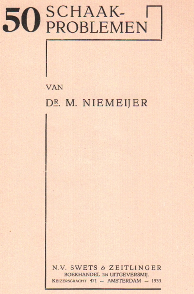 795 Niemeijer, M(eindert). 50 Schaakproblemen. Amsterdam, Swets & Zeitlinger, 1933. Gr. - 8°. Mit Diagrammen. 64 Seiten. Original geheftet mit defektem Schutzumschlag. (19)