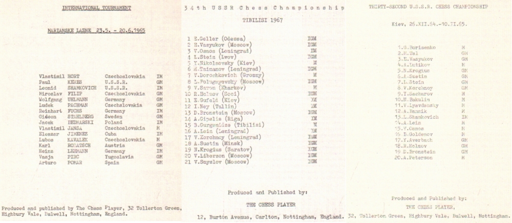 Mondial des échecs par equipes Sinaia 1965, Örebro 1966, Harrchov 1967 (3