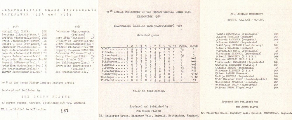 geheftet. Luhacovice 1969, Reykjavik 1964 & 1966, Reykjavik 1970, Kislovodsk
